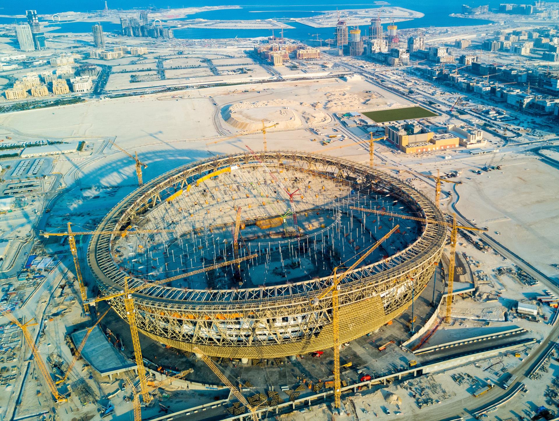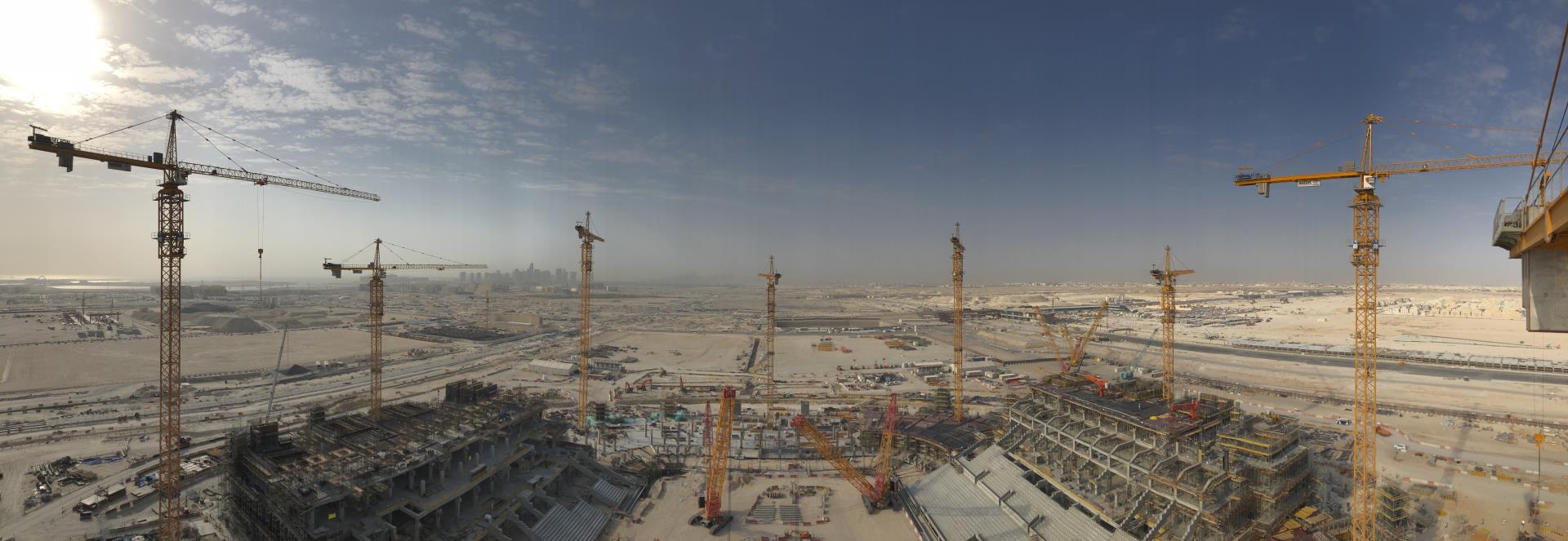 △中聯(lián)重科塔機(jī)助建盧賽爾體育場(圖片來源:鐵建國際)