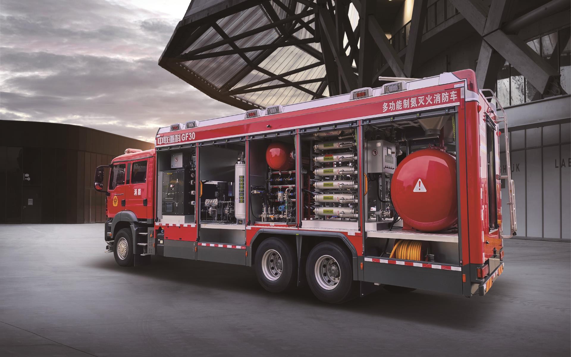 此次入選的“大流量持續(xù)制氮及粉劑復(fù)合噴射滅火裝備”,是全球首款集氮氣制取、氣體滅火、粉劑噴射滅火及三相射流功能為一體的特種消防車。該產(chǎn)品根據(jù)應(yīng)急作戰(zhàn)實際需求設(shè)計,完美融合了氣體消防車與干粉消防車的優(yōu)勢,具備可持續(xù)大流量氮氣制取和高低壓對外供給等功能,特別適合于帶電設(shè)備、可燃氣體火災(zāi)、圖書館、酒窖等密閉空間無損滅火,以及石油化工儲罐、裝置惰化滅火、活潑金屬等特殊火災(zāi)等場景的應(yīng)急救援。