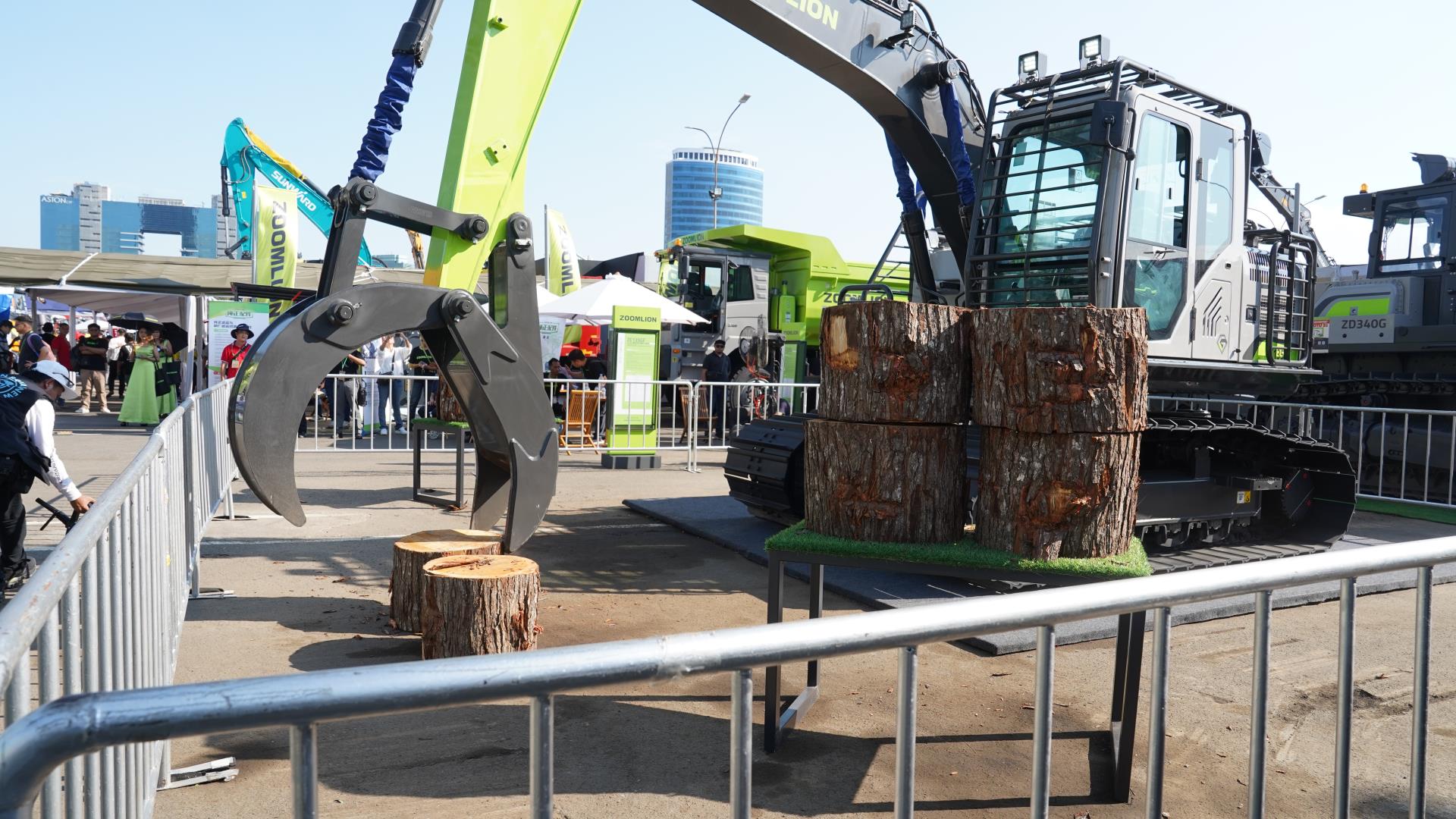 以此次展示的森林型挖掘機ZE135GF為例,其針對印尼當?shù)毓r對整機重量、抓斗容量、防護、程序做了定制化改進,包括對主板厚度加強、應用負載動態(tài)自匹配技術(shù)和超低怠速系統(tǒng)、定制化生物燃油過濾等,具有高通過性和高穩(wěn)定性,工作效率也大幅提高。展會上,這款產(chǎn)品還進行了現(xiàn)場演示,伸臂、精準抓取、壘放,一系列動作一氣呵成,順滑的操作性能引來現(xiàn)場客戶的陣陣掌聲。
