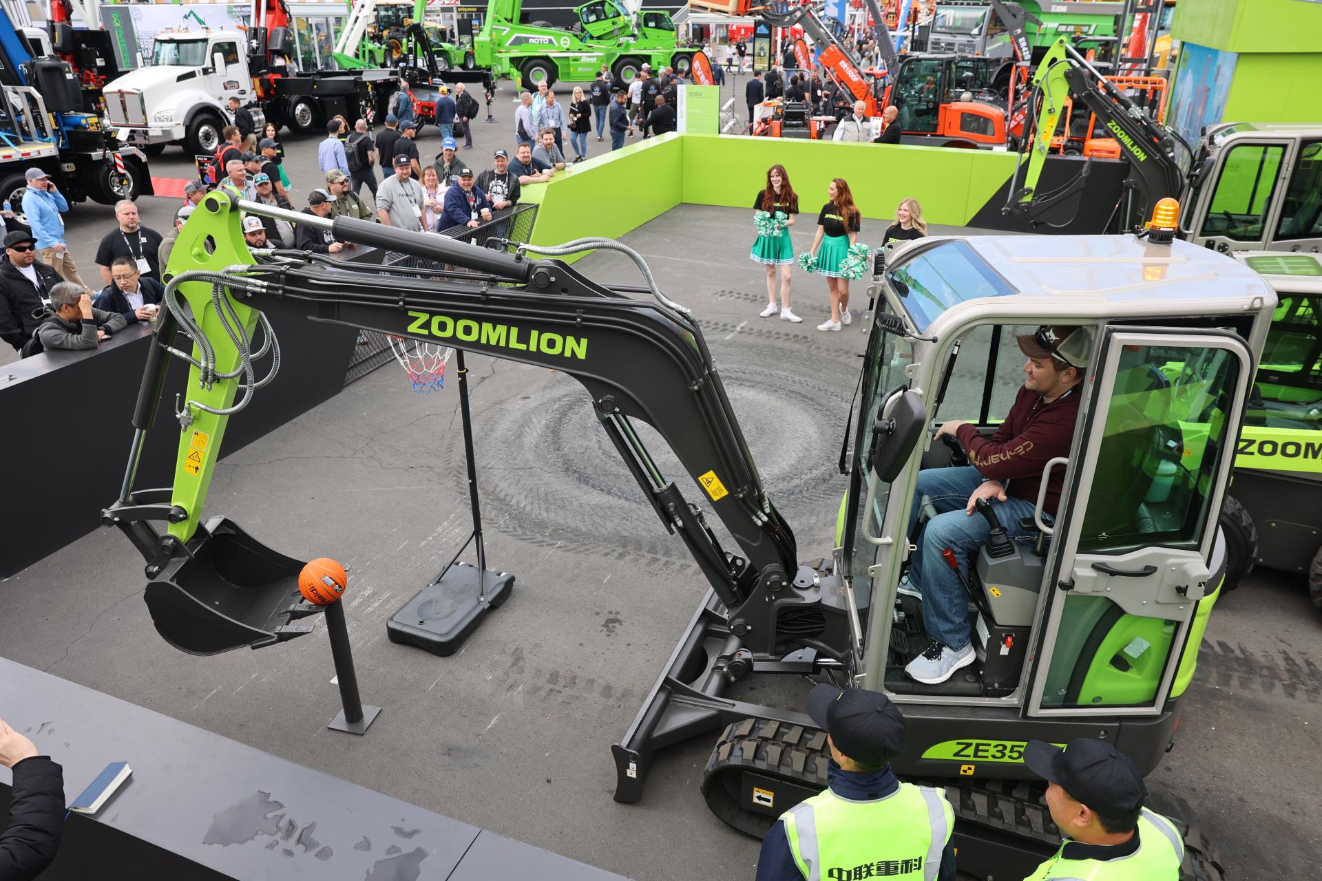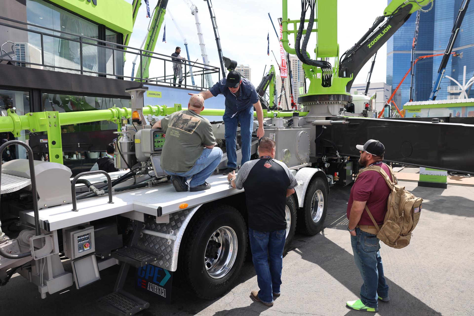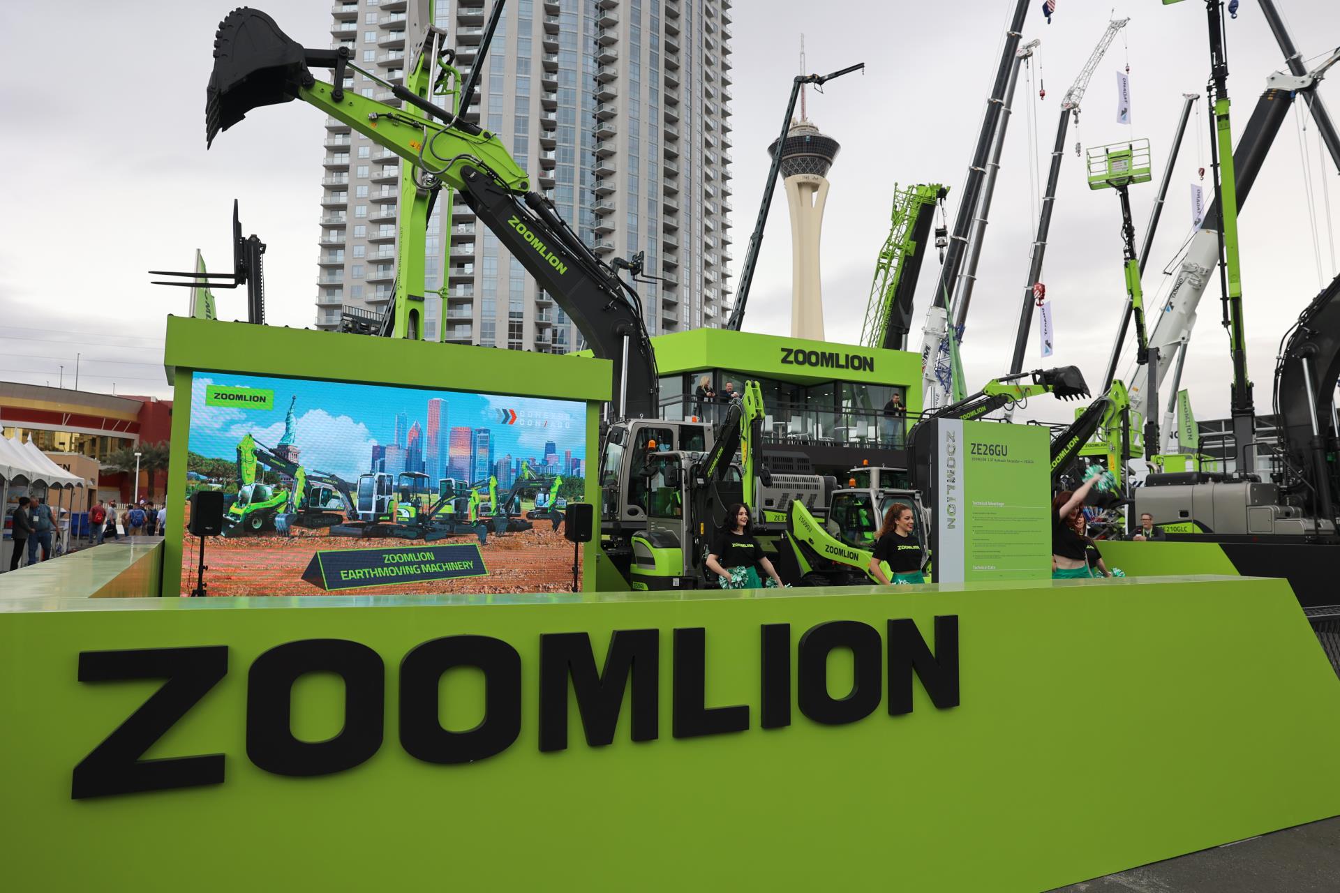 與上一屆美國拉展相比,中聯重科此次參展產品增加近60%。在F9615展位,是中聯重科工程起重機械、建筑起重機械、混凝土機械、高空作業(yè)機械、土方機械、工業(yè)車輛、m-tec干混砂漿設備等7大類產品及零部件,凝聚硬核實力的產品、精彩的挖機投籃表演、活力的舞蹈,吸引著一批又一批的客商駐足體驗、觀看;展廳內,商務洽談簽約、產品發(fā)布、智能制造演示等活動輪番上演,精彩持續(xù)不停。