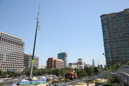 兩臺(tái)QY95大型起重機(jī),它們的工作是定位支撐央視“高空二維有線索道攝像系統(tǒng)”,起重機(jī)位于東單和郵通街兩個(gè)位置,由兩端拉起560米的索道。用于拍攝習(xí)近平總書(shū)記乘車(chē)閱兵的畫(huà)面,并承擔(dān)側(cè)面拍攝閱兵方陣的重任。兩臺(tái)QY95起重機(jī)架設(shè)的長(zhǎng)達(dá)560米的索道是全世界目前**長(zhǎng)的一條二維有線索道。