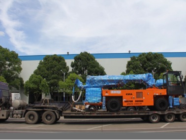 ▲中聯(lián)重科湖南CIFA本地化生產(chǎn)的濕噴機發(fā)往**三方市場塔吉克斯坦