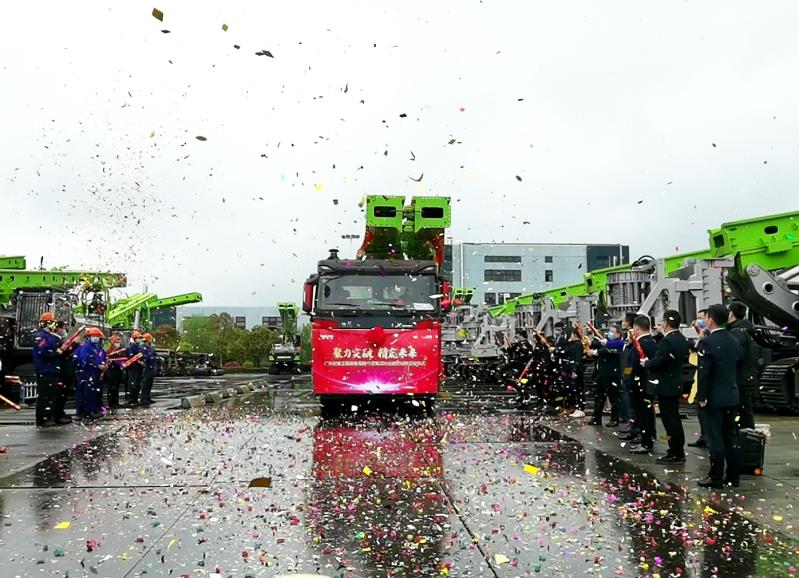 隨后,中聯(lián)重科向廣東宏盛工程裝備有限公司交付設(shè)備“金鑰匙”。伴隨著熱鬧的禮炮聲,一輛輛載著旋挖鉆機(jī)的大卡車井然有序的駛出了中聯(lián)重科上海工業(yè)園,正式踏上了建設(shè)全國(guó)重點(diǎn)工程項(xiàng)目的新征程。