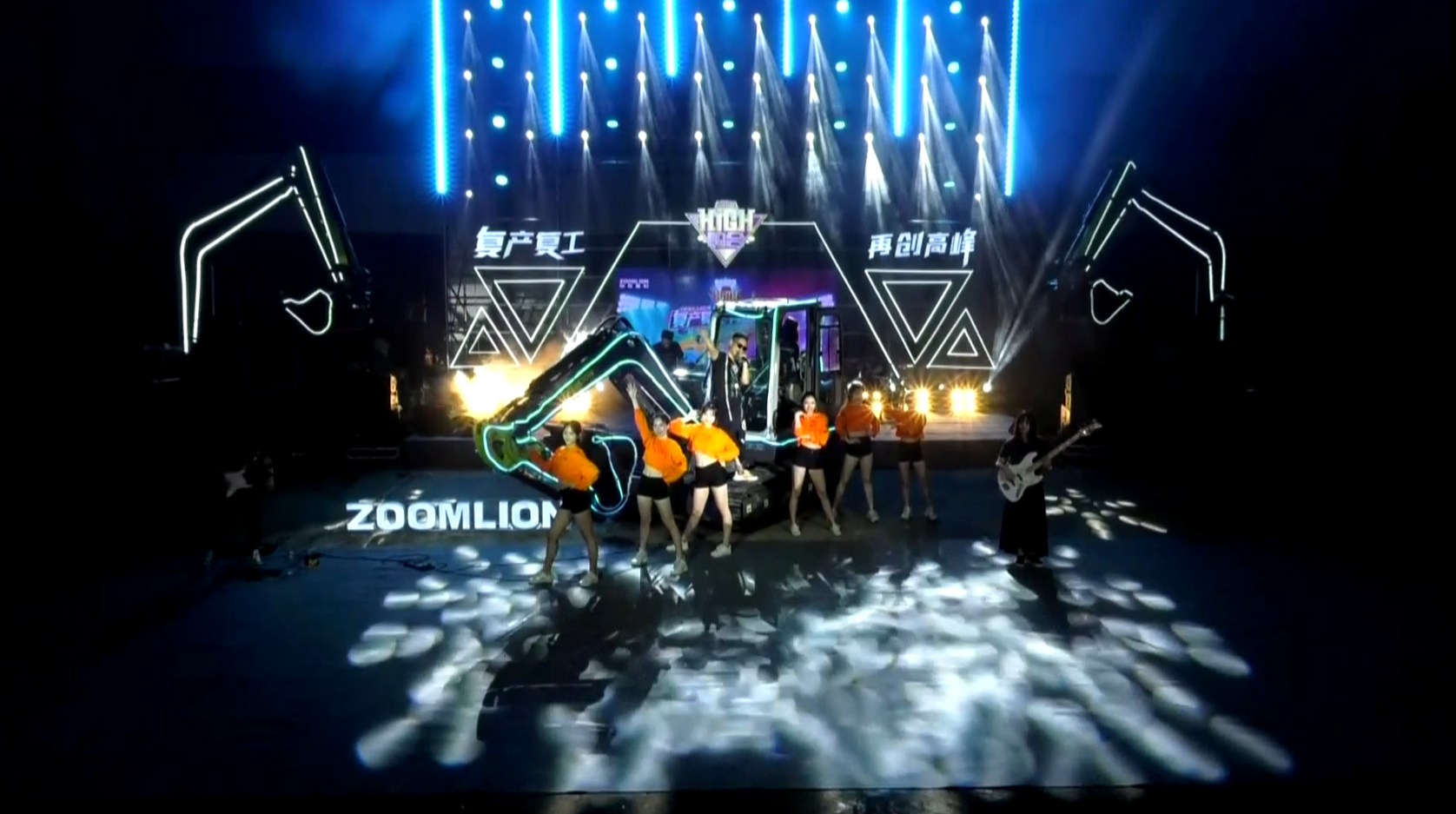 △中聯(lián)重科土方機(jī)械直播活動中燈光秀、搖滾樂引爆直播間