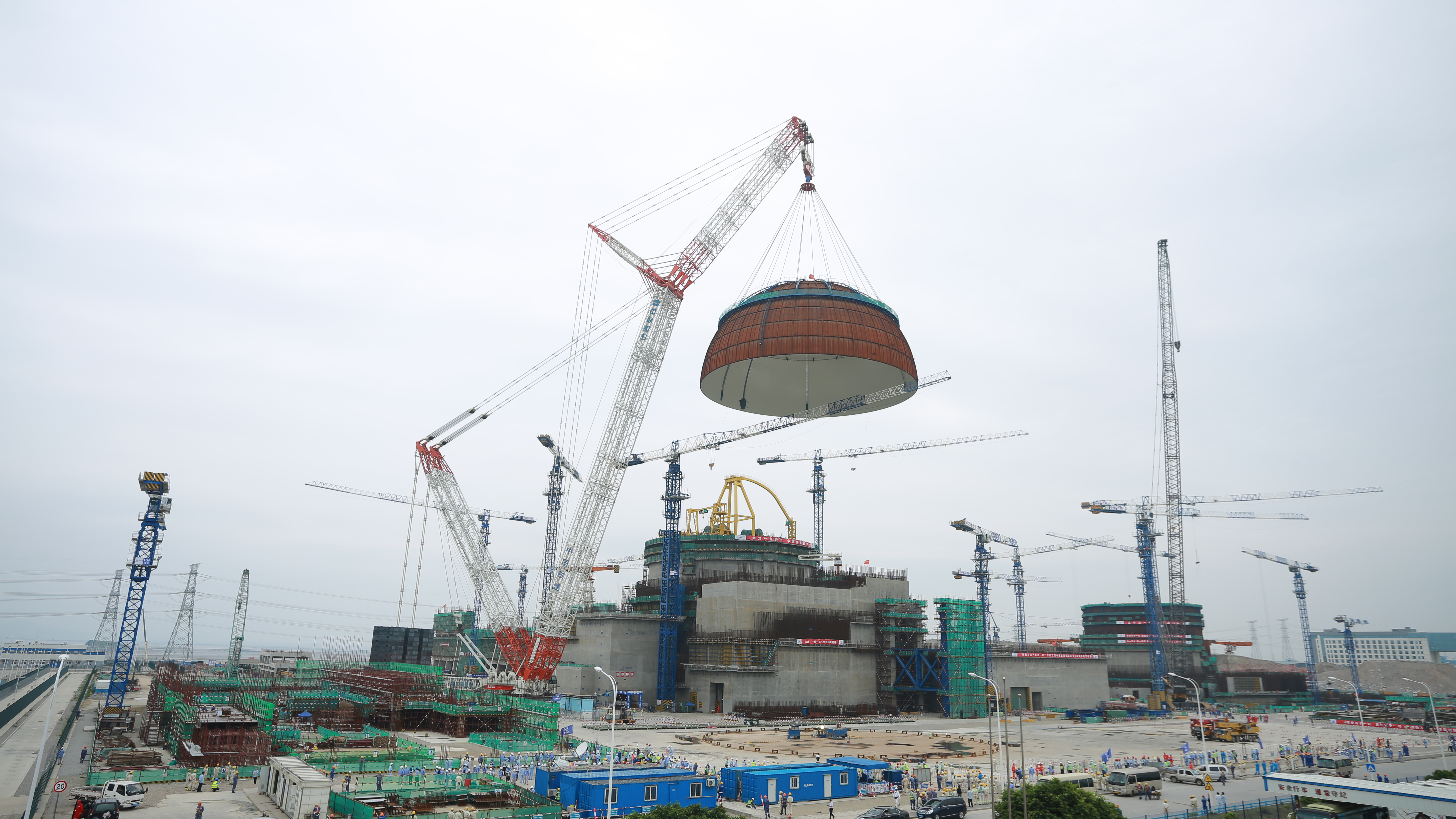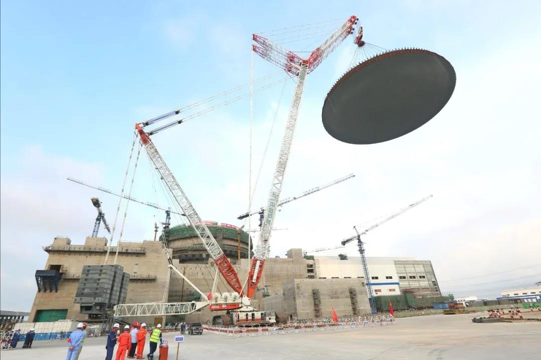 △中聯(lián)重科3200噸履帶吊助力“華龍一號” 福清核電6號機組外層安全殼穹頂鋼模板吊裝(圖片來源于“中核集團”微信公眾號)