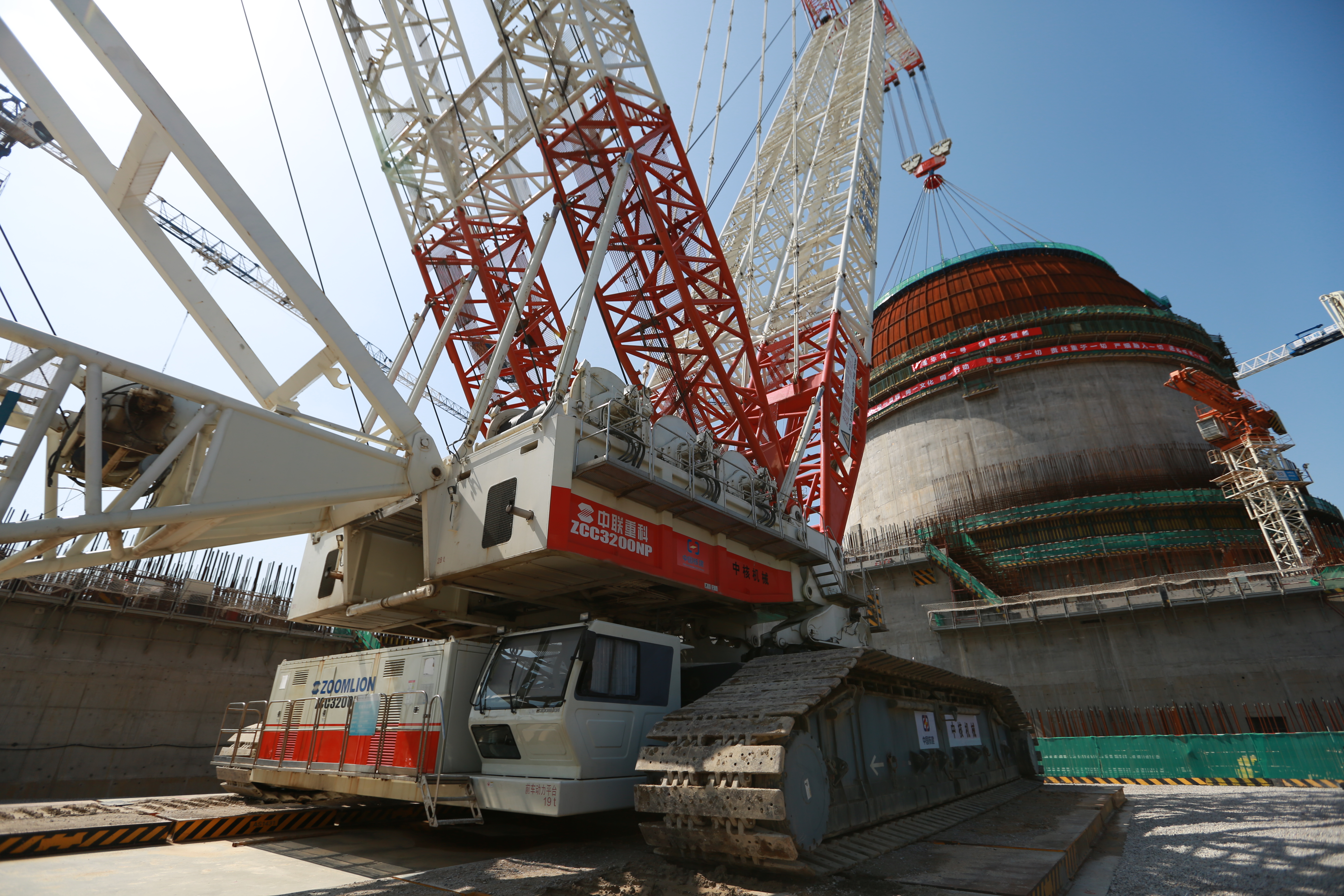 △2017年,中聯(lián)重科3200噸履帶式起重機吊裝“華龍一號”5號機組穹頂