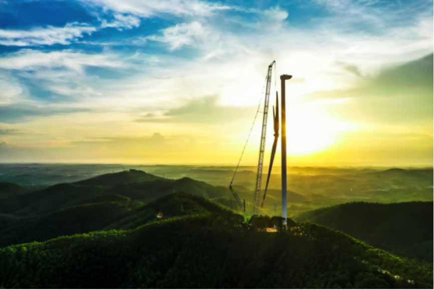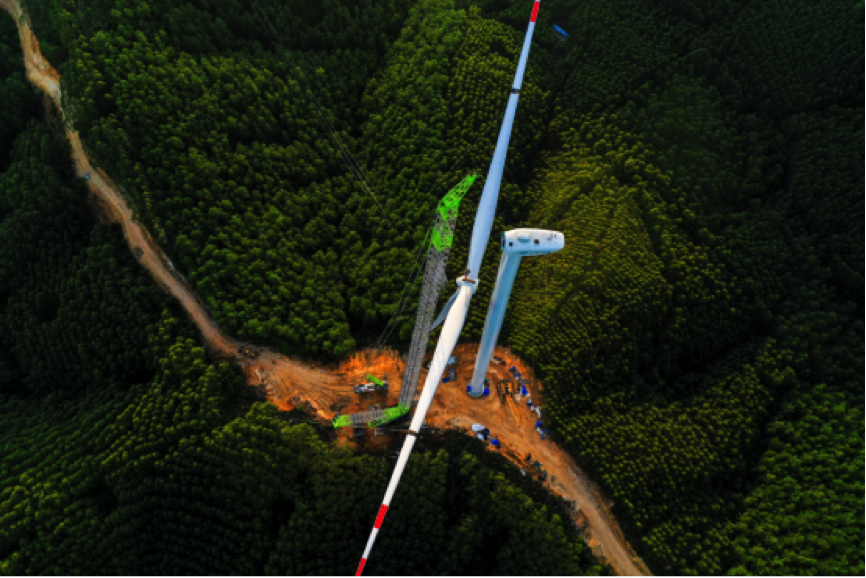 合浦曲樟風(fēng)電場工程位于廣西合浦縣東北部,這里風(fēng)力資源豐富,然而想要利用這些大自然的饋贈并非易事。風(fēng)電場選址在植被茂密的丘陵地區(qū),交通不便、土質(zhì)較軟,而且因在丘陵頂端,開辟出的施工場地非常狹小。要在這樣的山地工況下吊裝140米高的風(fēng)電塔,國內(nèi)尚無前例,施工前,行業(yè)內(nèi)對此項目能否順利進(jìn)行一直有著各種各樣的猜測。