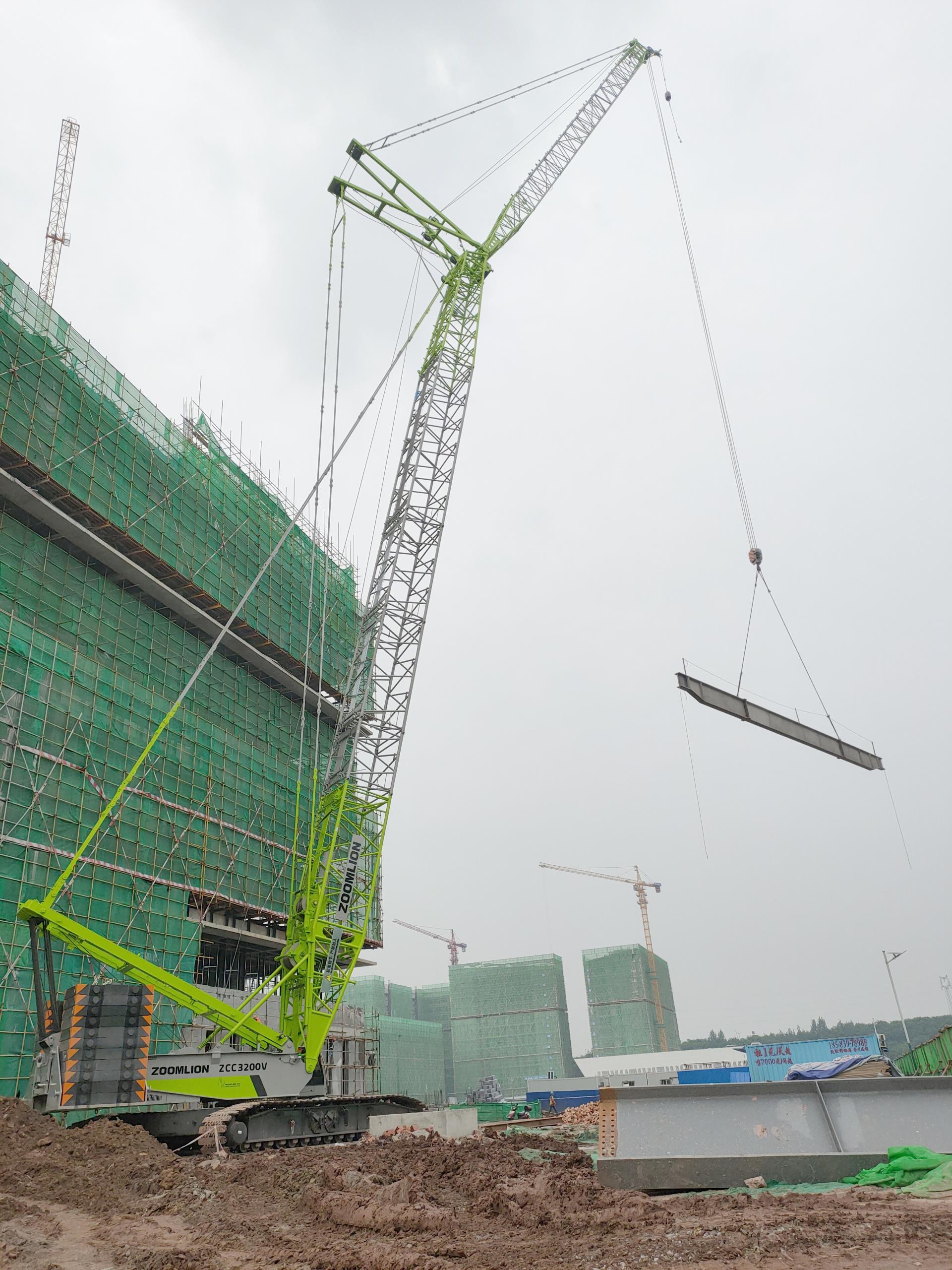 確定吊裝任務后,項目承建方和中聯(lián)重科服務團隊都高度重視,迅速制定詳細吊裝方案。雙方一致決定將由中聯(lián)重科ZCC3200V履帶起重機來擔當此次大型鋼結(jié)構(gòu)件的吊裝作業(yè),采用48米主臂+42米塔臂帶鵝頭架工況,**大程度上保障吊裝“重任”的圓滿完成。