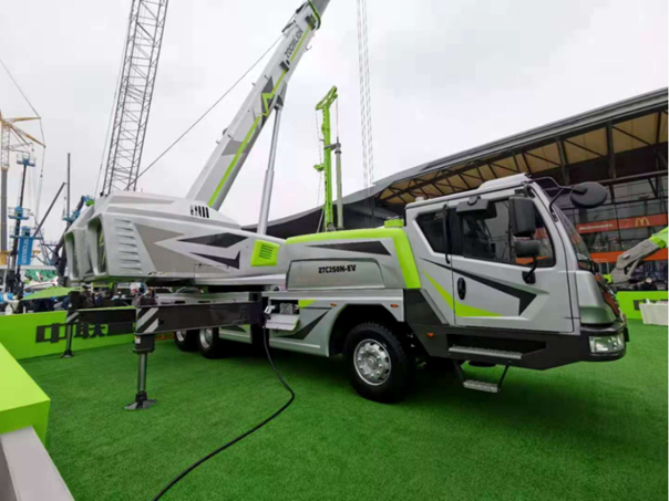 ▲中聯(lián)重科全球首臺整車純電驅(qū)動汽車起重機ZTC250N-EV涂裝新奇,造型前衛(wèi)