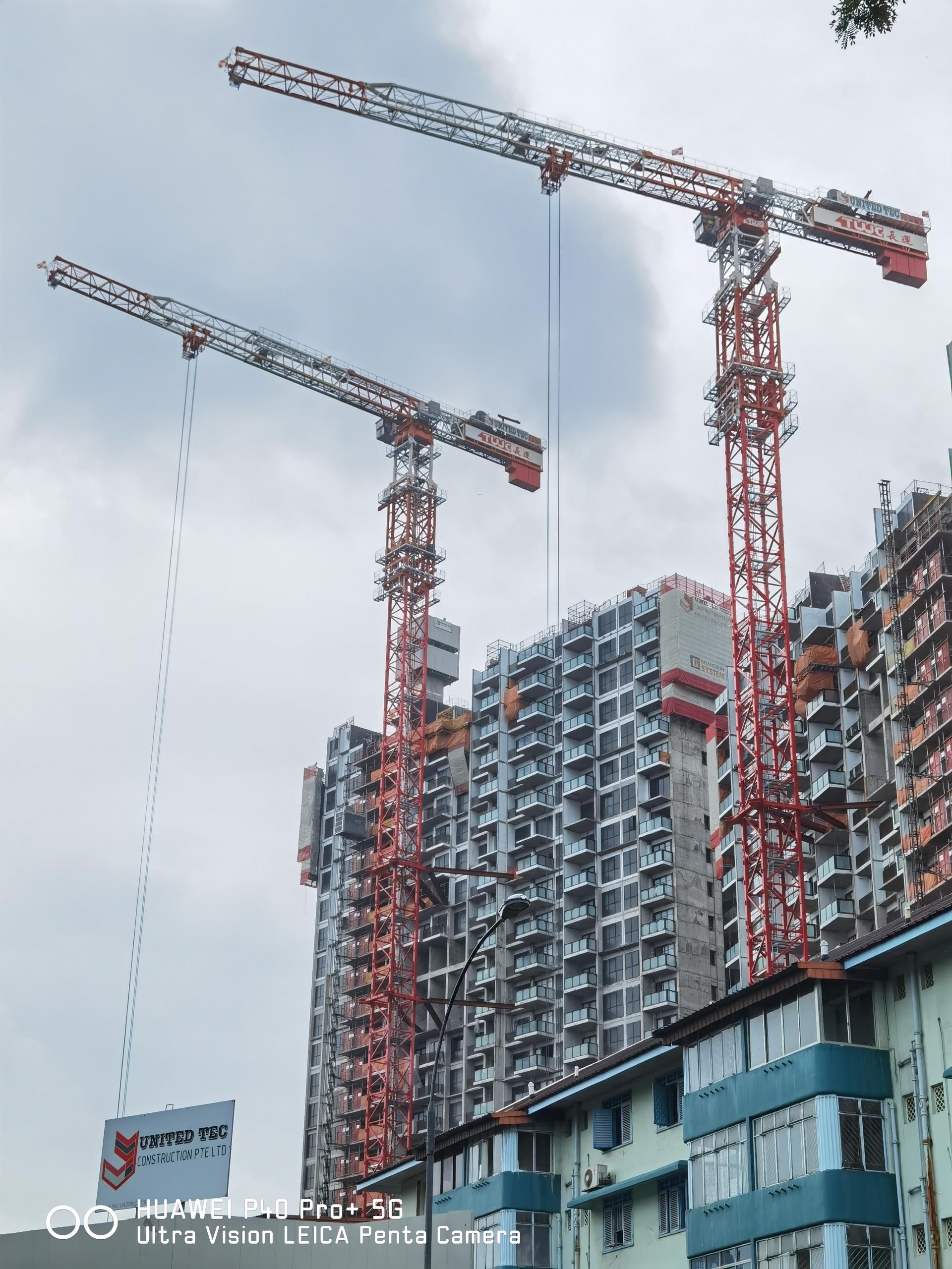 △中聯(lián)重科T1200-64W塔機(jī)在新加坡南峰雅苑住宅項(xiàng)目施工現(xiàn)場(chǎng)