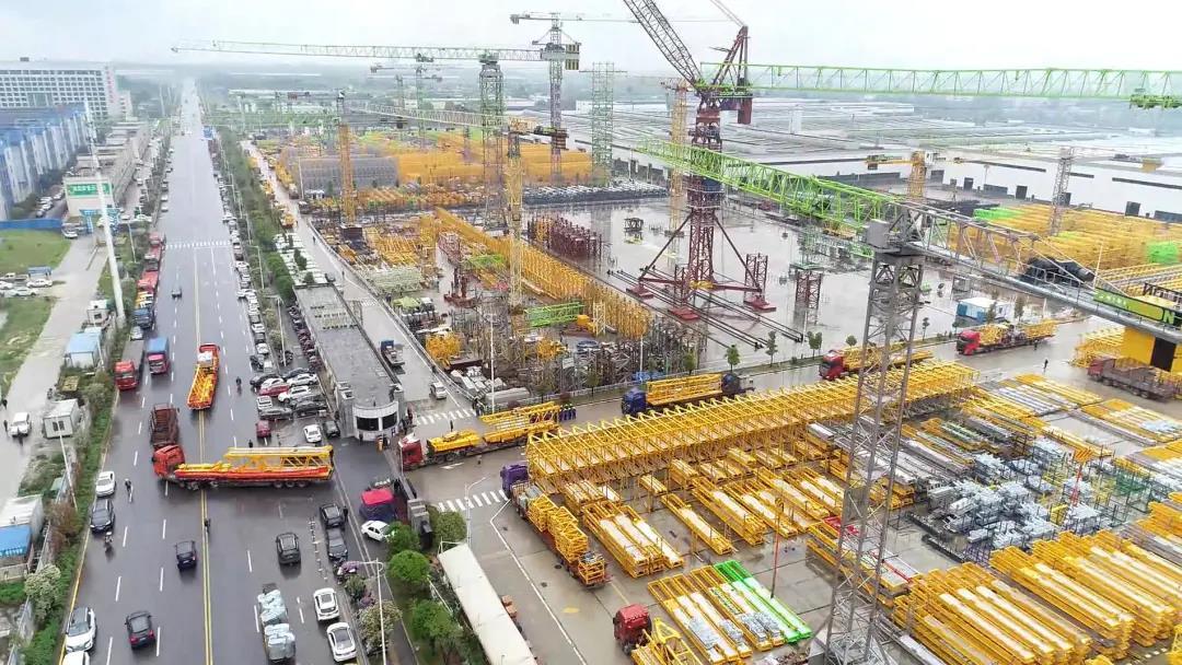 ▲中聯(lián)重科T1200-64門架式塔機(jī)出口印尼發(fā)貨現(xiàn)場