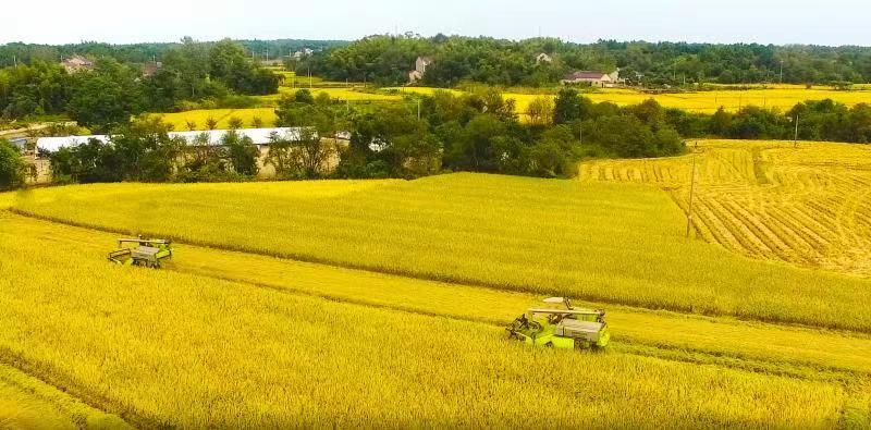 秋高氣爽 星星綠意點(diǎn)綴金黃稻田