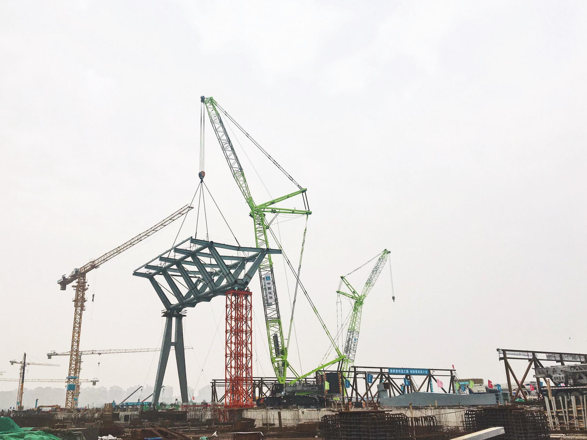 △2019年,中聯(lián)重科ZCC3000履帶吊助建國家會展中心一期工程