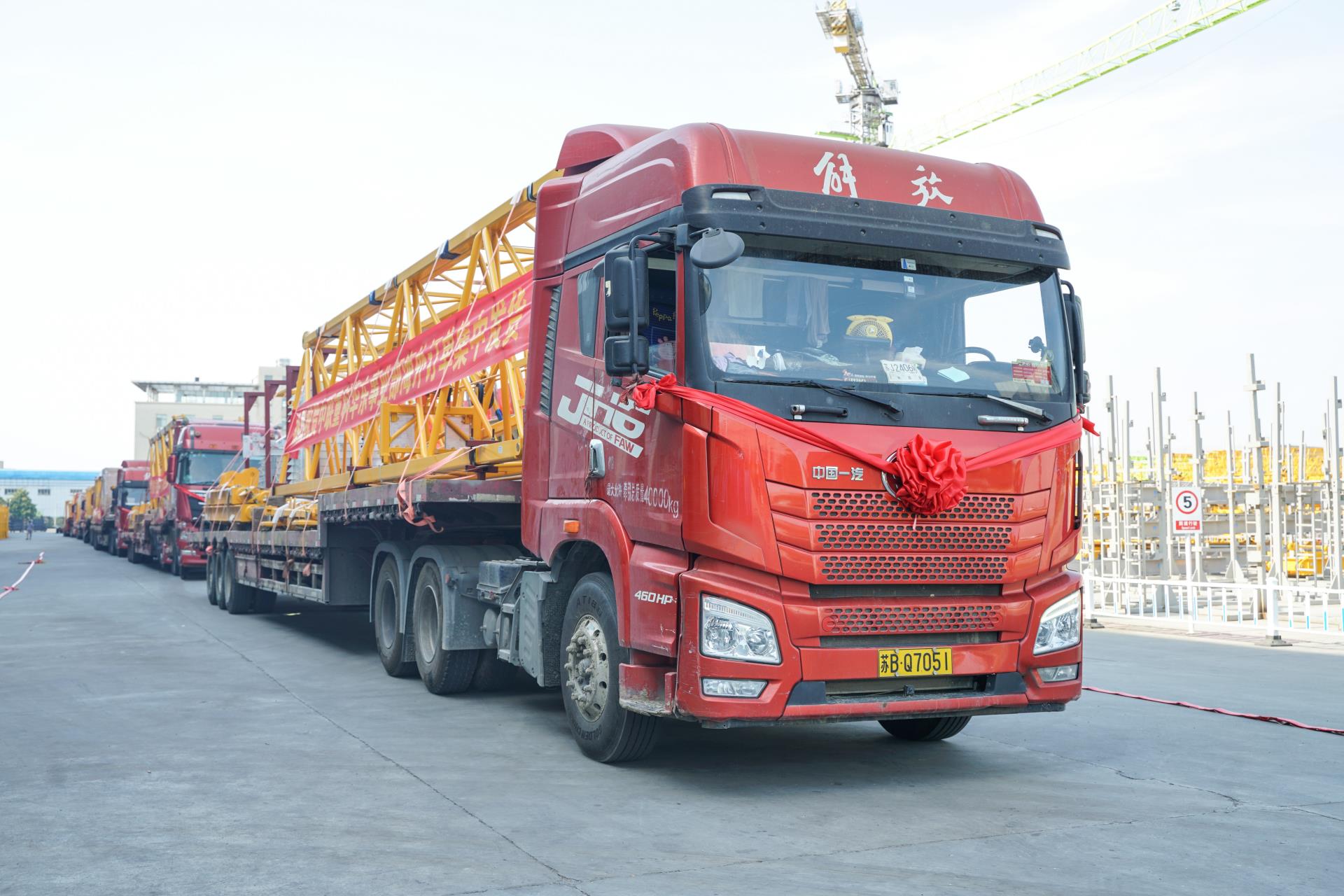 朝行匆匆晚亦忙,在持續(xù)高溫模式下,中聯(lián)重科產品也正全球熱銷,發(fā)車不停。8月15日,中聯(lián)重科海外訂單集中發(fā)貨儀式在江陰制造基地隆重舉行。隨著一聲“發(fā)車”指令,22輛滿載的貨車排成長龍駛向港口,火熱的發(fā)貨彰顯中聯(lián)重科塔機的強大市場競爭力。