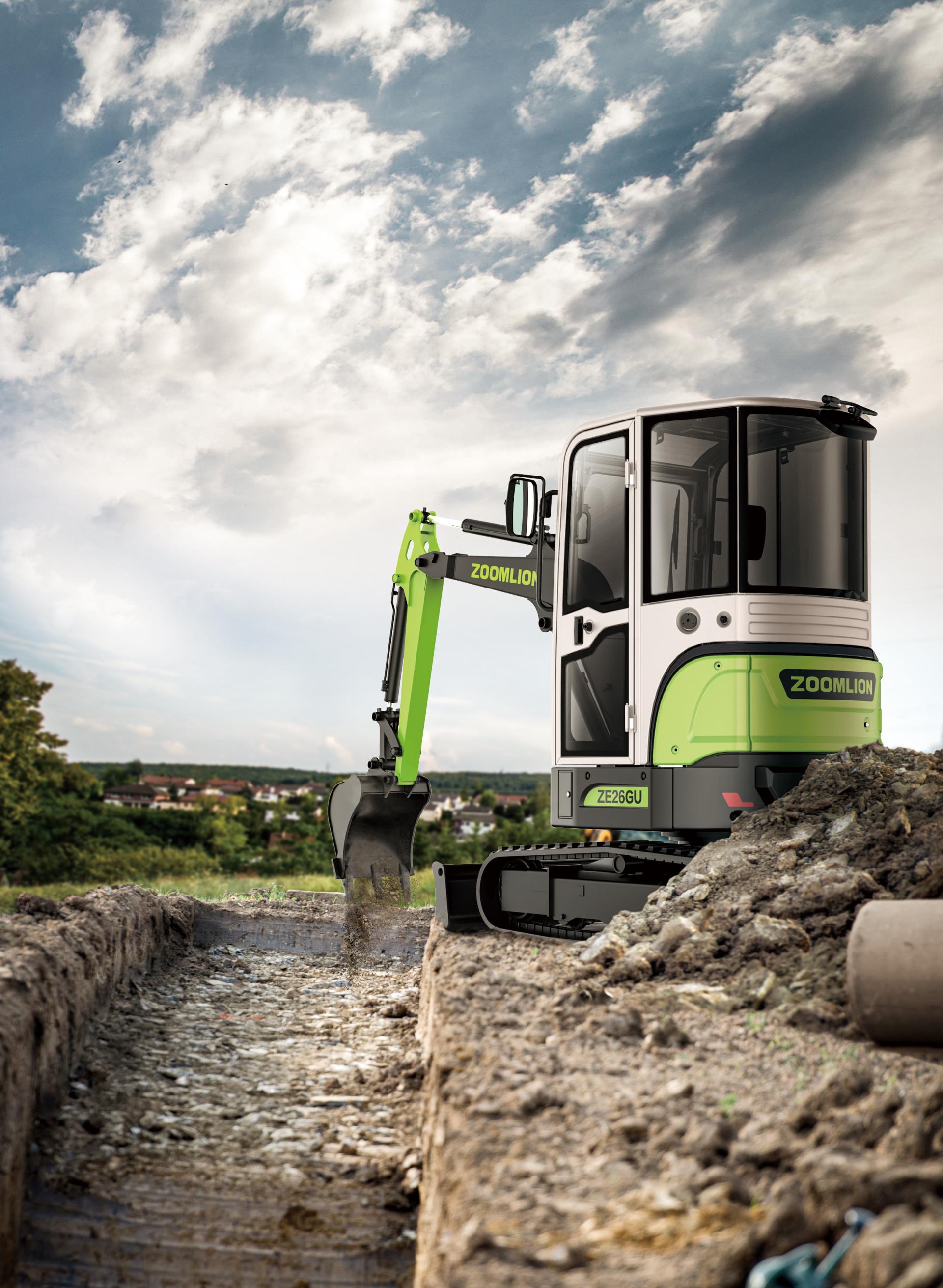 ▲中聯(lián)重科參展的ZE18GU,ZE26GU,ZE35GU挖掘機(jī)