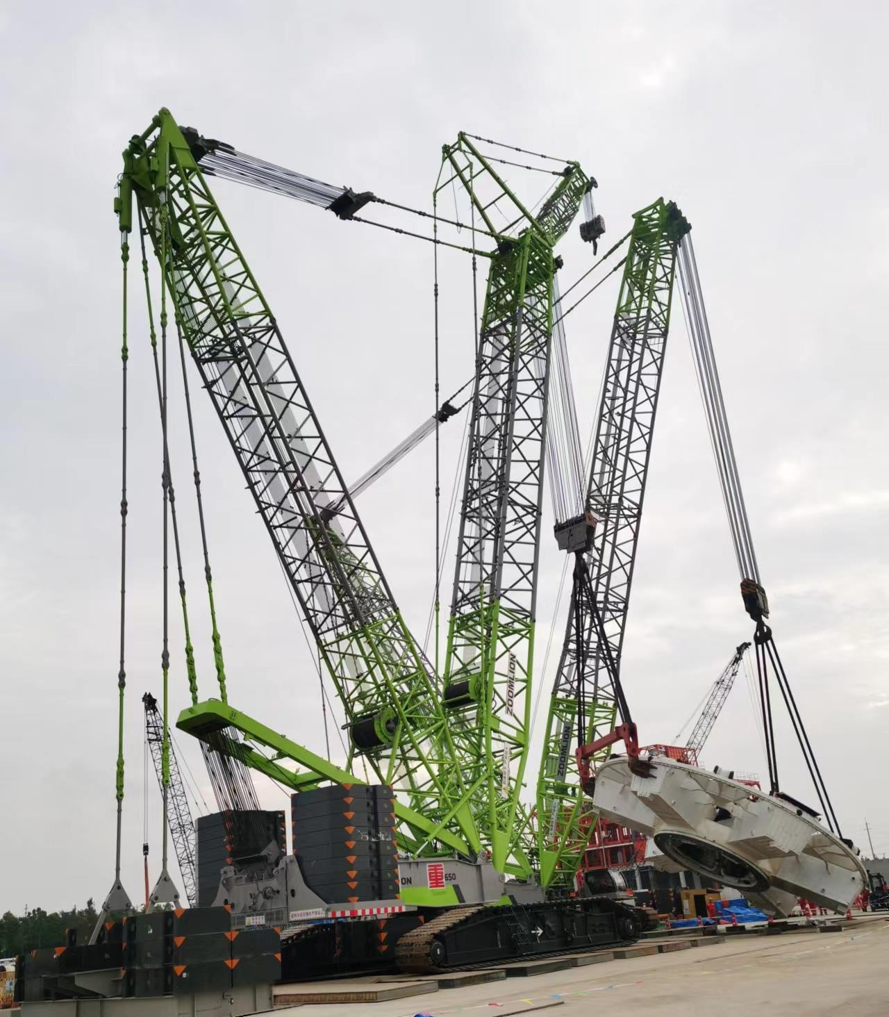吊起重達308噸的刀盤,并完成“翻身”、下井等一系列操作,不僅需要起重能力強大、性能穩(wěn)定的重器,兩臺設(shè)備之間還需要配合無間,對工況的適應(yīng)性強。經(jīng)過多方考慮,施工方**終選擇了中聯(lián)重科的QUY650履帶起重機和ZCC7200履帶起重機。在現(xiàn)場,QUY650履帶起重機作為主吊設(shè)備,采用超起盾構(gòu)36米主臂+12米副臂工況,ZCC7200履帶起重機積極輔助,采用超起重型主臂42米工況。在兩臺履帶起重機的緊密協(xié)作、配合下,“申通號”盾構(gòu)機刀盤被緩緩從地面吊起,并完成翻身,隨后起重機將刀盤吊平穩(wěn)至井口,大約歷時3小時,“申通號”盾構(gòu)機刀盤順利下井。
