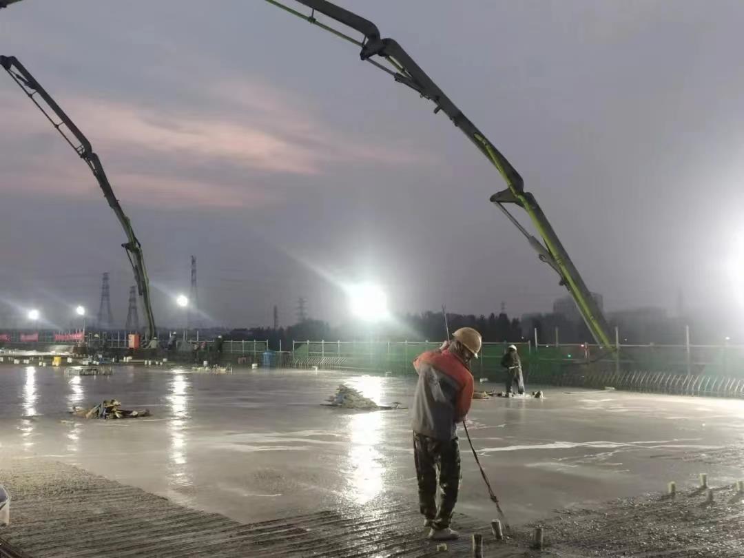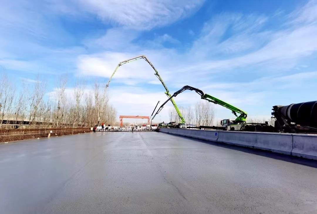 京雄高速公路(北京段)全線單跨**大跨70米現(xiàn)澆梁上跨南水北調(diào)+綠洲西路**后一聯(lián)的澆筑,需要的混凝土方量大、作業(yè)時(shí)間長、澆筑工藝復(fù)雜。為保證澆筑施工過程順利進(jìn)行,確?;炷潦┕べ|(zhì)量,在混凝土澆筑前,項(xiàng)目方針對(duì)混凝土澆筑的各項(xiàng)工作進(jìn)行了精心部署,并選擇用中聯(lián)重科泵車來進(jìn)行施工,保證人員、機(jī)械等滿足現(xiàn)場施工需求,保證施工現(xiàn)場安全質(zhì)量可控。