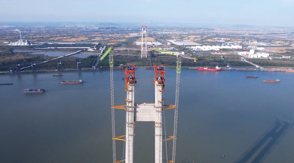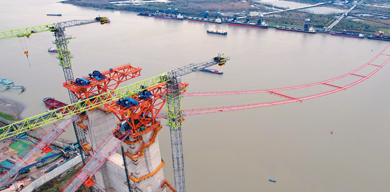 ▲中聯(lián)重科塔機(jī)助力南京仙新路過江通道施工(圖片來源于中交二航局)