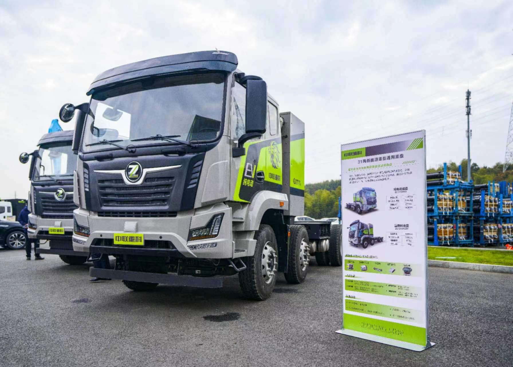 ▲中聯(lián)重科打造的新能源關(guān)鍵零部件和新能源重型通用底盤