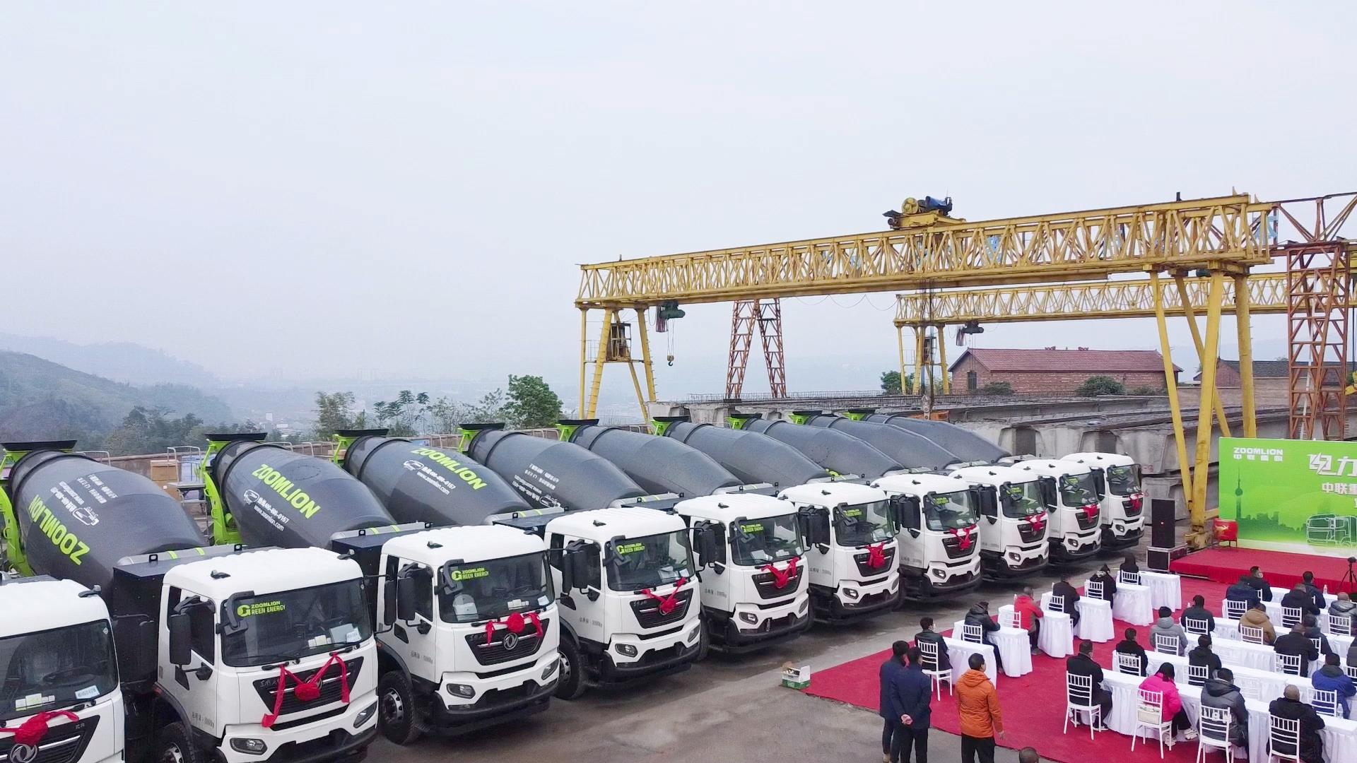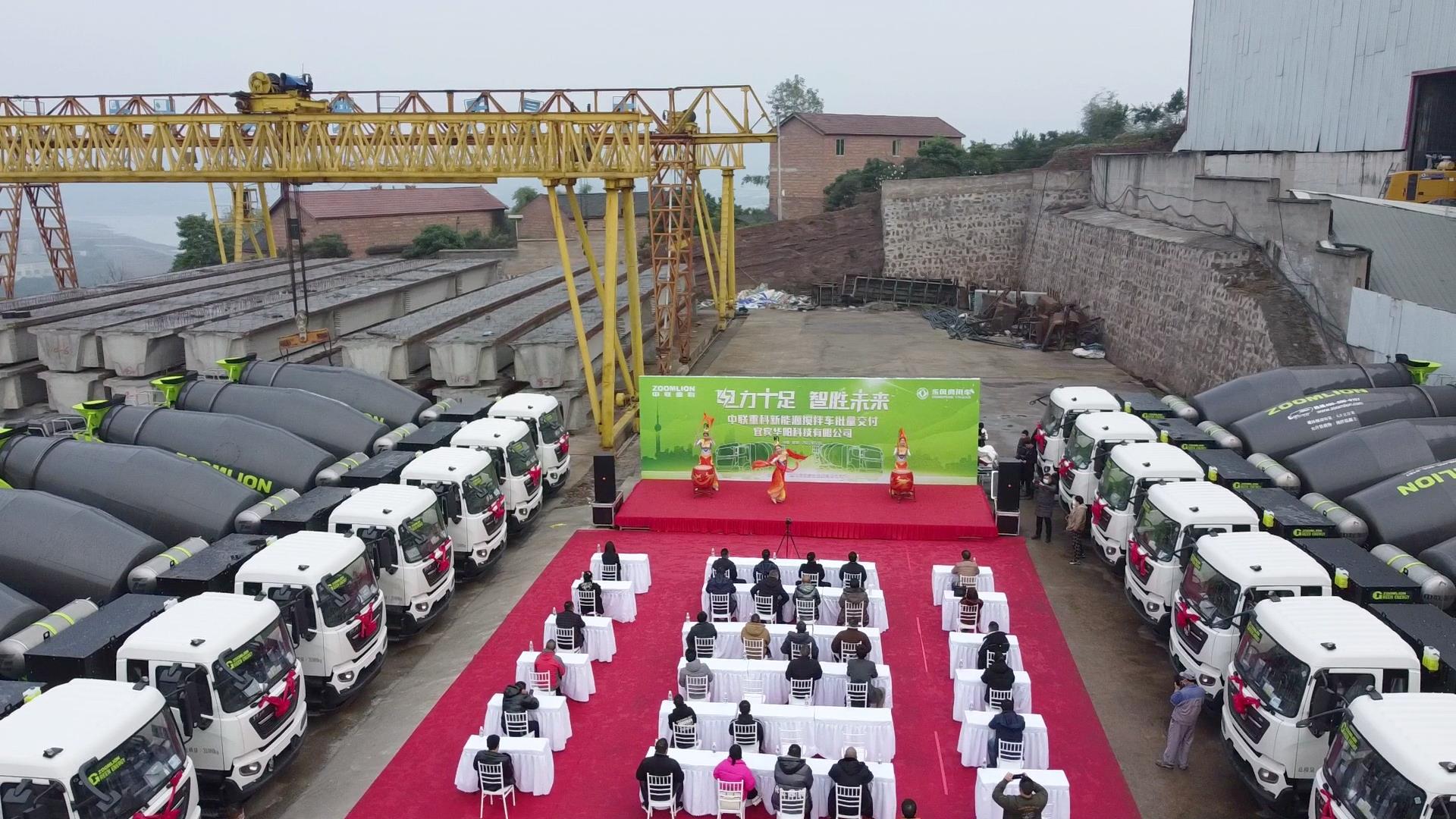 12月29日上午,20臺中聯(lián)重科充電式攪拌車頭戴紅花整齊列陣,批量交付宜賓華陽科技有限公司。冬日暖陽下,醒目的極光綠熠熠生輝,這批新能源匠心精品將以極致性能、強勁節(jié)能,為客戶鋪就綠色低碳的快速發(fā)展之路。