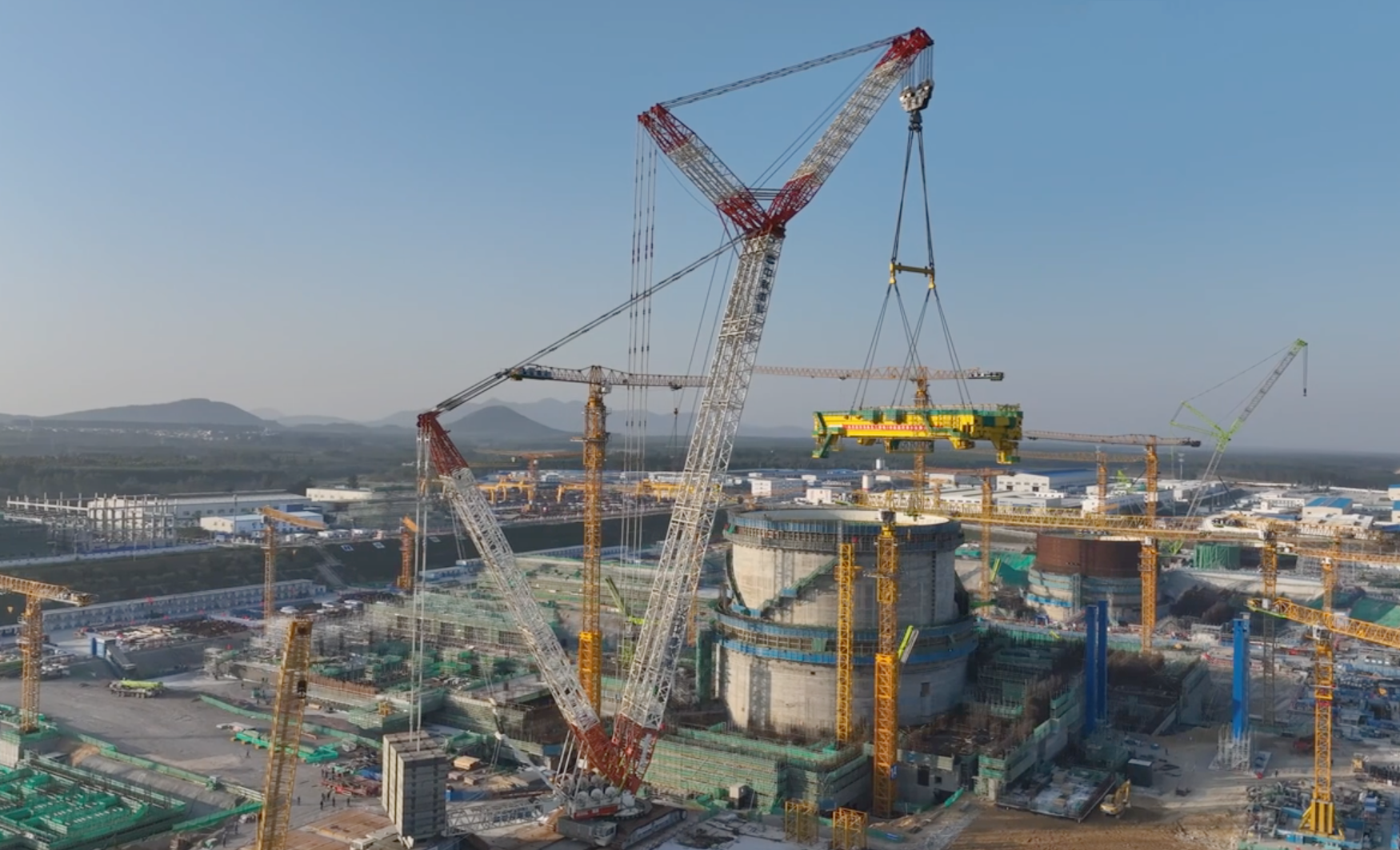 此前,海南昌江核電3號機(jī)組環(huán)梁環(huán)軌吊裝,也是在中聯(lián)重科ZCC3200NP履帶起重機(jī)的平穩(wěn)吊裝下精準(zhǔn)就位,拿下新年“開門紅”。此次環(huán)吊主梁的順利就位,為3號機(jī)組穹頂?shù)跹b創(chuàng)造了必要條件,也為后續(xù)主設(shè)備安裝提供了先決保障。中聯(lián)重科將繼續(xù)主動擔(dān)當(dāng)、積極作為,持續(xù)打造高性能標(biāo)桿裝備,為我國核電事業(yè)高質(zhì)量發(fā)展貢獻(xiàn)硬核的重工力量。