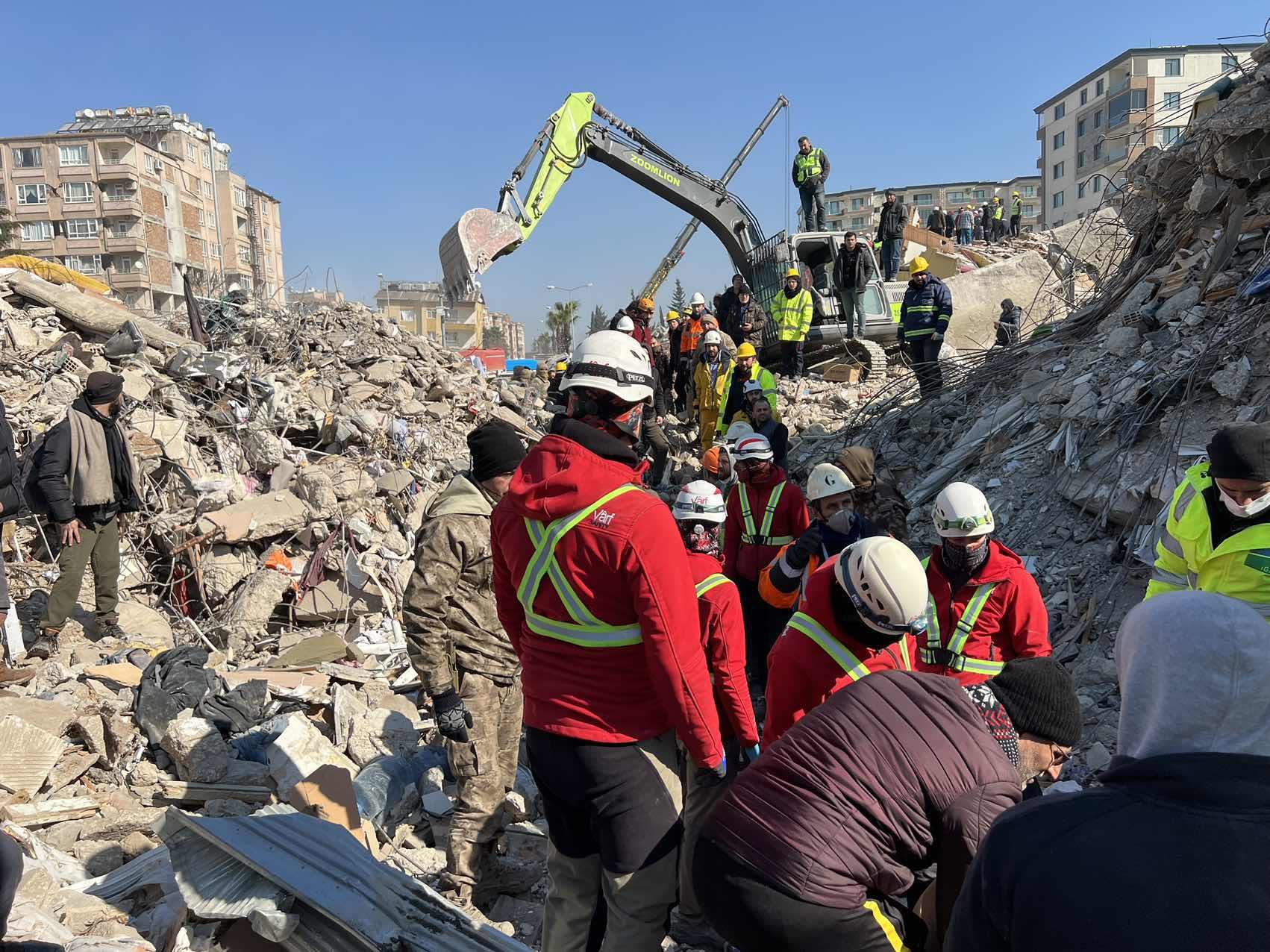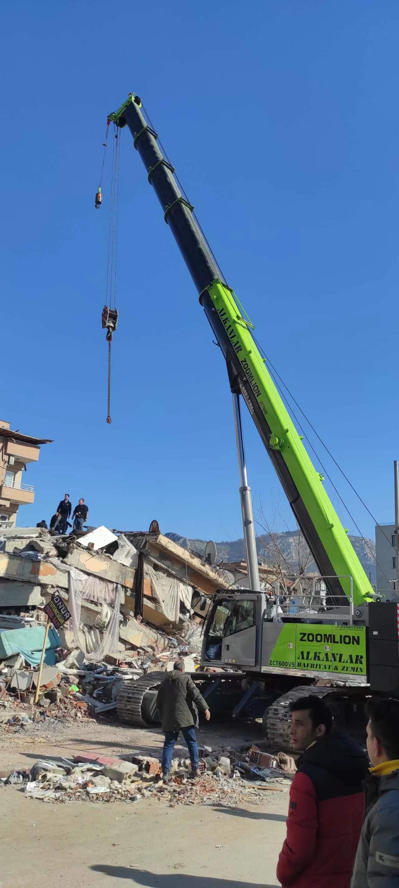 隨著救援行動(dòng)有組織有序開(kāi)展,中聯(lián)重科參與救援的力量也不斷壯大。目前,在土耳其地震災(zāi)區(qū)已有挖掘機(jī)、履帶吊、汽車(chē)吊等多種類(lèi)型的中聯(lián)重科設(shè)備參與救援。經(jīng)過(guò)三天三夜的持續(xù)奮戰(zhàn),中聯(lián)重科救援隊(duì)在哈塔伊省已救出30多名被困者。