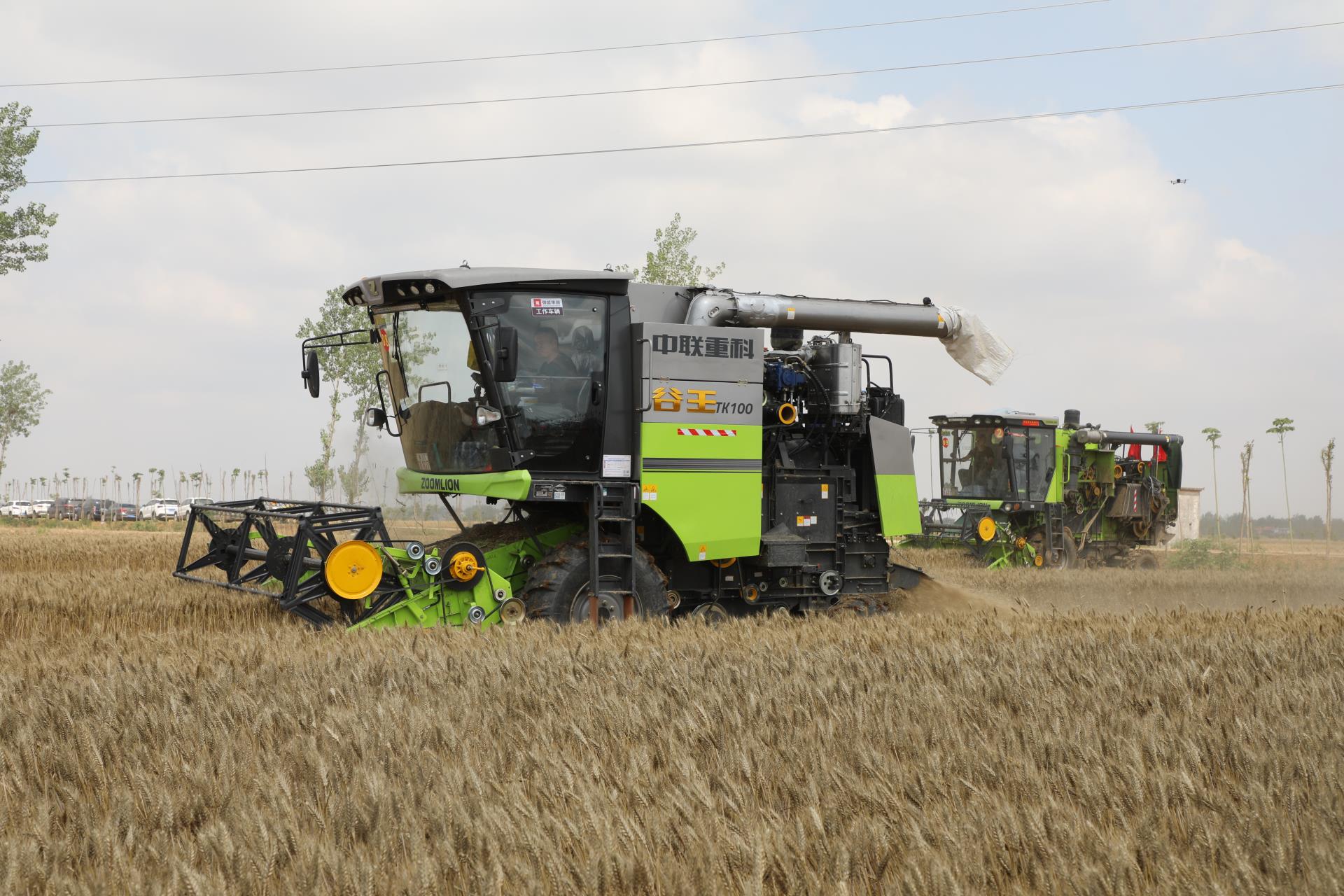 ▲中聯(lián)重科TK100縱軸流谷物聯(lián)合收獲機(jī)正在搶收小麥