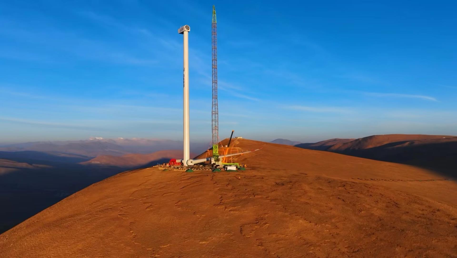 中核薩迦30萬千瓦風(fēng)光儲一體化項目風(fēng)電場區(qū)位于喜馬拉雅山北麓,距離珠穆朗瑪峰僅140公里左右,**高海拔達到5193米,是目前世界上在建海拔**高、單體容量**大的風(fēng)電項目。此次吊裝風(fēng)機塔筒高102米,輪轂中心高105米,單葉片長度達90米,葉輪直徑達183米,吊裝的基礎(chǔ)海拔即高達4987米,總海拔高度達5092米。