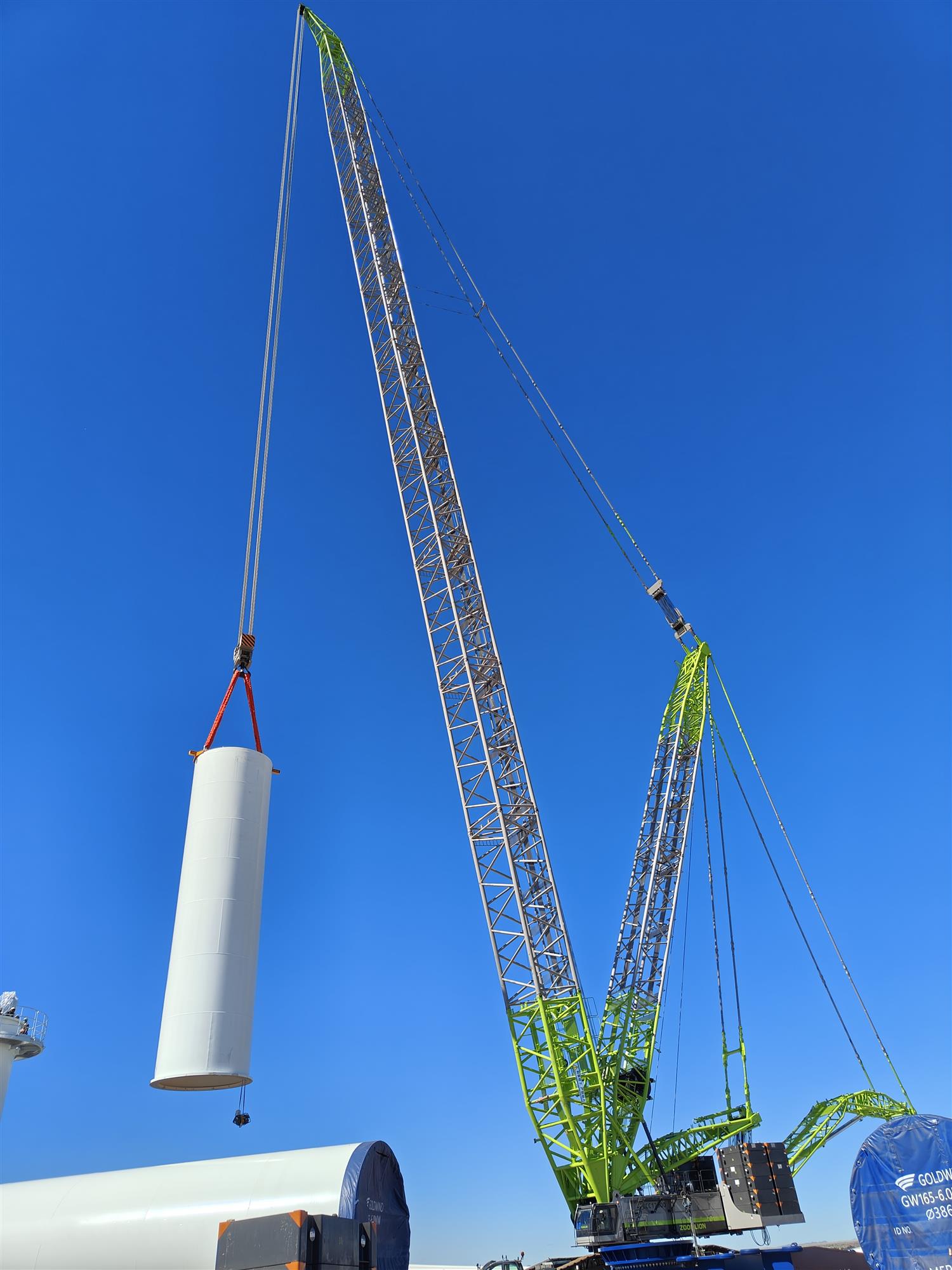 中聯(lián)重科1250噸級履帶起重機(jī)完成交付后,立即投入到當(dāng)?shù)刂攸c(diǎn)風(fēng)電項(xiàng)目建設(shè)中。當(dāng)?shù)貢r(shí)間上午10:05分,在項(xiàng)目工地上,隨著現(xiàn)場指揮員一聲令下,中聯(lián)重科履帶起重機(jī)將重達(dá)107噸的風(fēng)機(jī)塔筒平穩(wěn)吊起,然后將塔筒順利安裝在基座上,整個(gè)吊裝過程銜接緊密、井然有序,為后續(xù)風(fēng)機(jī)的安裝工作奠定了堅(jiān)實(shí)基礎(chǔ)。中聯(lián)重科的高品質(zhì)智造裝備以出色的實(shí)戰(zhàn)表現(xiàn),贏得非洲客戶的高度評價(jià)。