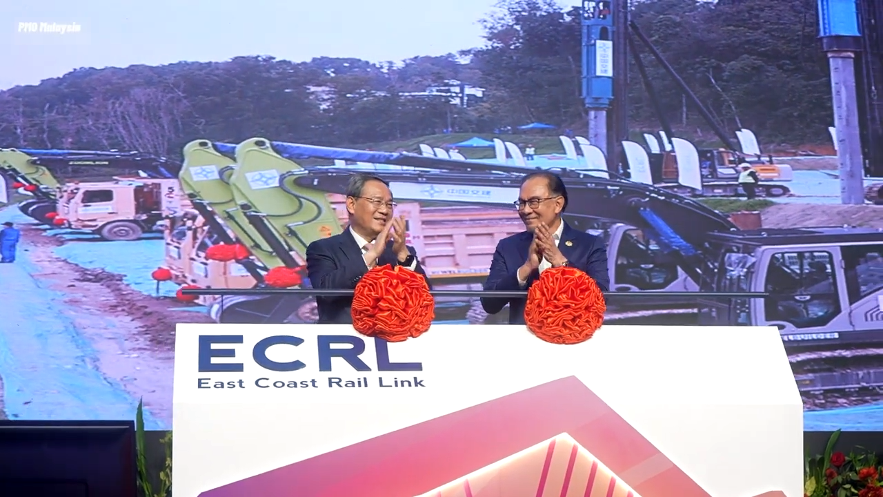 △中馬兩國總理共同推桿,正式啟動(dòng)鵝嘜車站建設(shè)(圖片來源:馬來西亞總理辦公室)