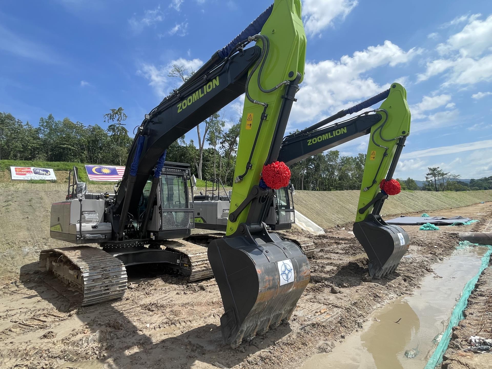 當(dāng)?shù)貢r(shí)間6月19日下午,馬來西亞東海岸鐵路項(xiàng)目鵝嘜車站動(dòng)工儀式在吉隆坡北部的鵝嘜隆重舉行。儀式上,中聯(lián)重科多款挖掘機(jī)“戴”著紅花傲立活動(dòng)現(xiàn)場,在接下來的施工中,將為項(xiàng)目建設(shè)提供強(qiáng)大的設(shè)備保障。