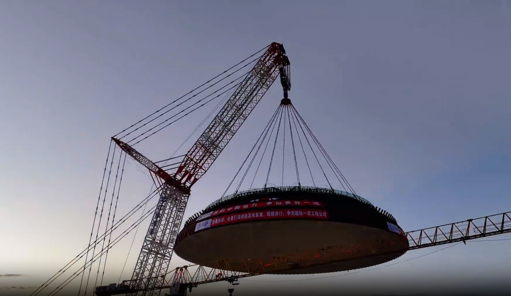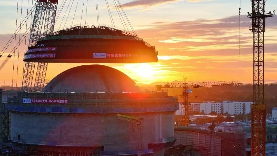 “準備起吊”!伴隨著現(xiàn)場吊裝總指揮的一聲令下,10月18日,總重量約為600噸的昌江核電二期3號機組超大型外穹頂模塊,在中聯(lián)重科3200噸履帶起重機的吊裝下安全而平穩(wěn)地落在核島頂部,為核電機組勾勒出了雄偉的輪廓,也標志著核島主體結構施工已基本完成,為接下來的安裝調(diào)試及并網(wǎng)發(fā)電奠定了堅實的基礎。