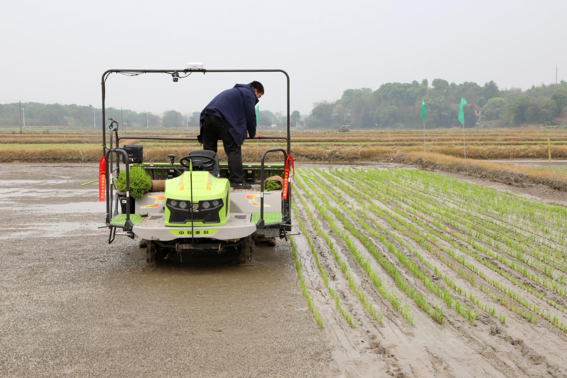 ▲中聯(lián)重科水稻機(jī)插秧“演武”現(xiàn)場