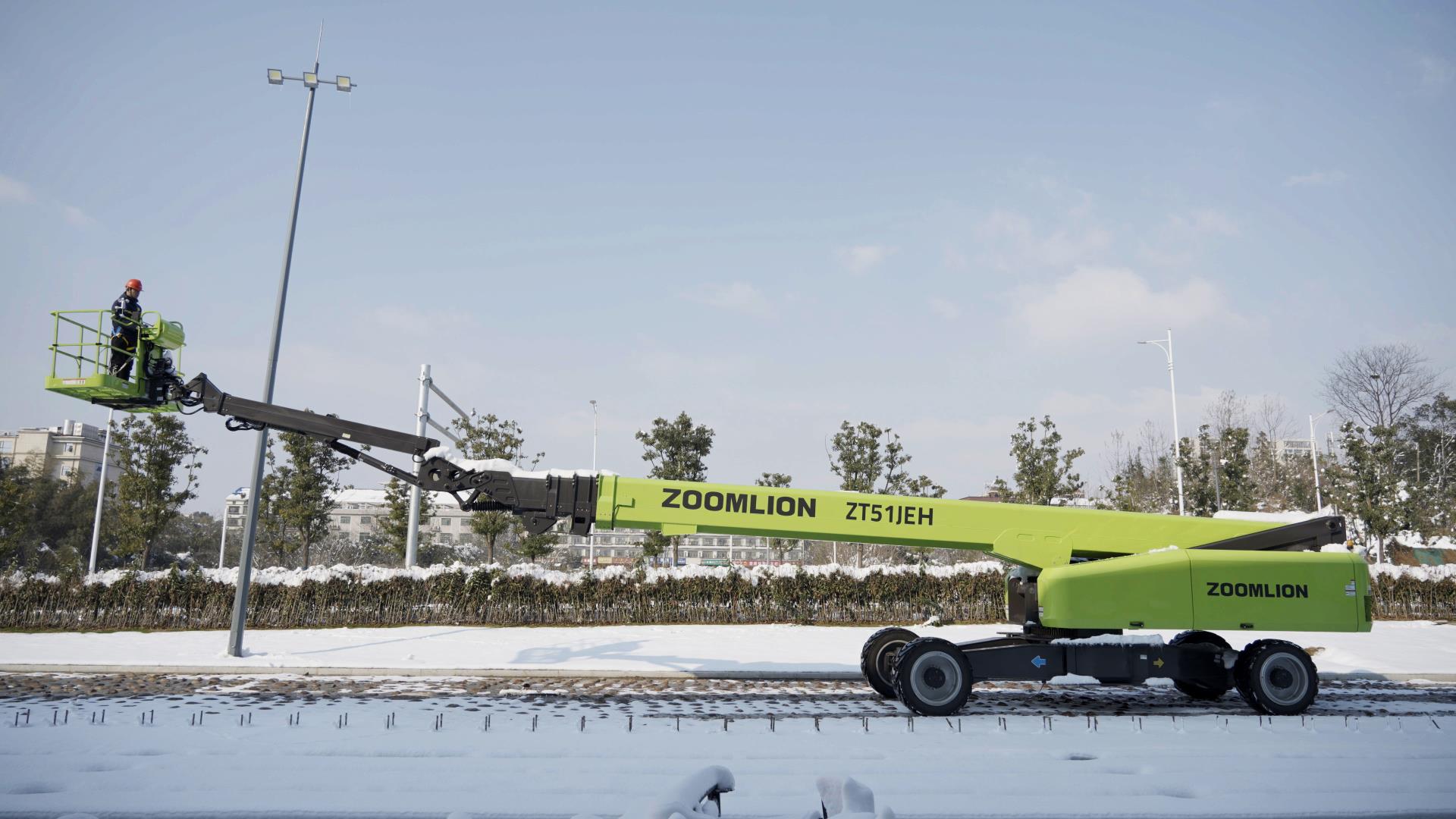 其中,中聯(lián)重科直臂式高空作業(yè)平臺ZT51JEH通過獨創(chuàng)的可油可電雙工作模式直擊行業(yè)痛點,在城區(qū)建筑群、室內(nèi)廠房等環(huán)保要求高的場景中,可切換純電模式實現(xiàn)零排放、低噪音作業(yè);進入野外無電網(wǎng)覆蓋的基建現(xiàn)場時,又能通過燃油供電保障設備持續(xù)運轉(zhuǎn),滿油滿電狀態(tài)下可續(xù)航7天以上,徹底解決了純電動高空設備“續(xù)航焦慮”。此外,ZT51JEH搭載低電壓平臺動力系統(tǒng),從源頭降低電氣安全風險,并結合超載保護、傾角預警、緊急停機等20余項全方位安全防護關鍵功能,構建起多重安全屏障,讓高空作業(yè)更可靠、更安心。
