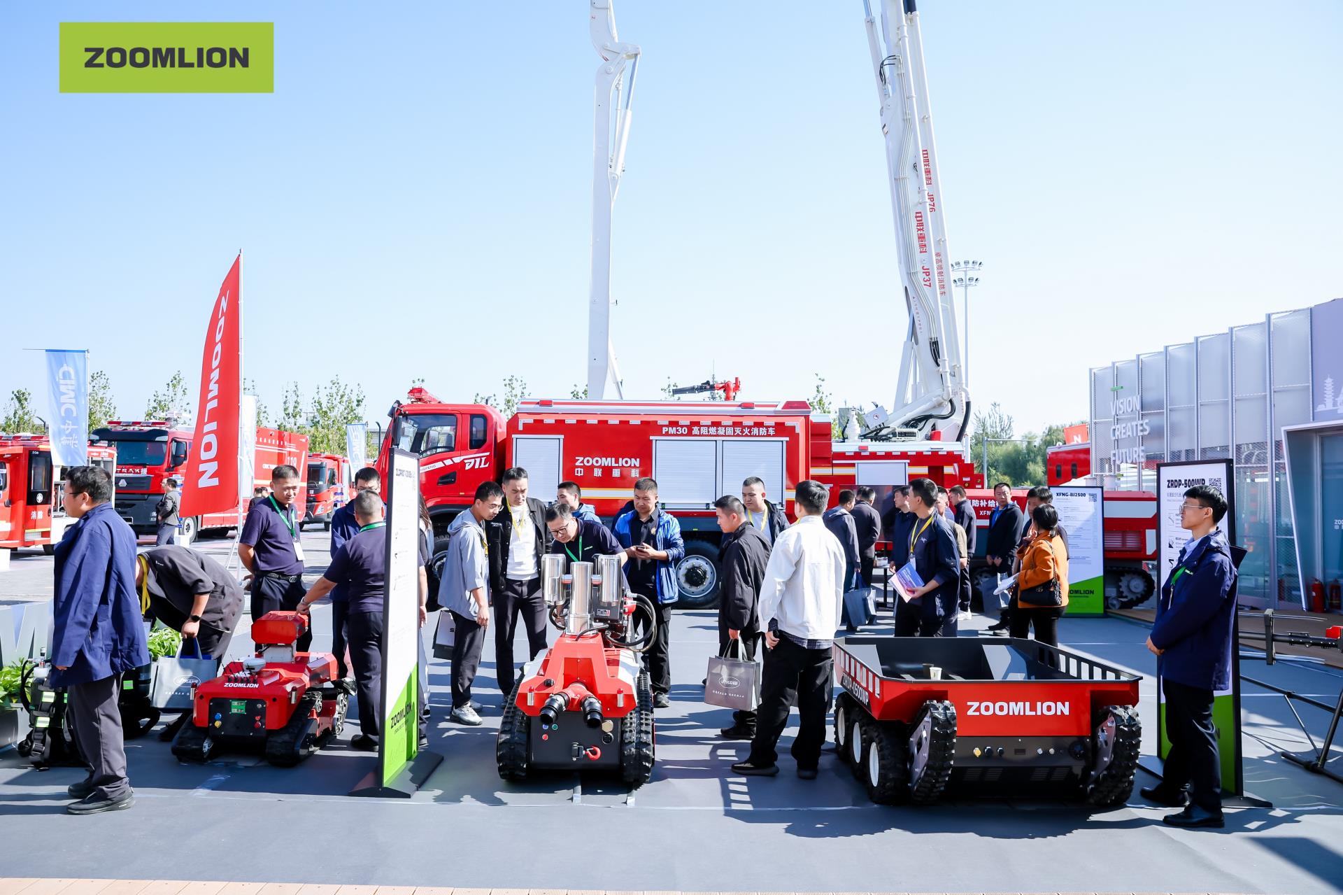 走進中聯(lián)重科展區(qū),數(shù)臺“鋼鐵巨人”巍然屹立,引來眾多觀眾駐足。此次中國國際消防設(shè)備技術(shù)交流展覽會,中聯(lián)重科共攜帶20余款產(chǎn)品亮相,其中14款產(chǎn)品為全球首發(fā),包括全球**高70米大跨距舉高噴射消防車、37米大跨距舉高噴射消防車、JX80混合動力動機場消防車、DJJY登機救援消防車、PM30高阻燃凝固滅火劑消防車、ZJ300核生化偵檢消防車、BP620泵浦消防車、電動排澇泵與浮艇泵等裝備,以及防爆、補給、運輸、巡檢及無人機等全系列無人裝備。