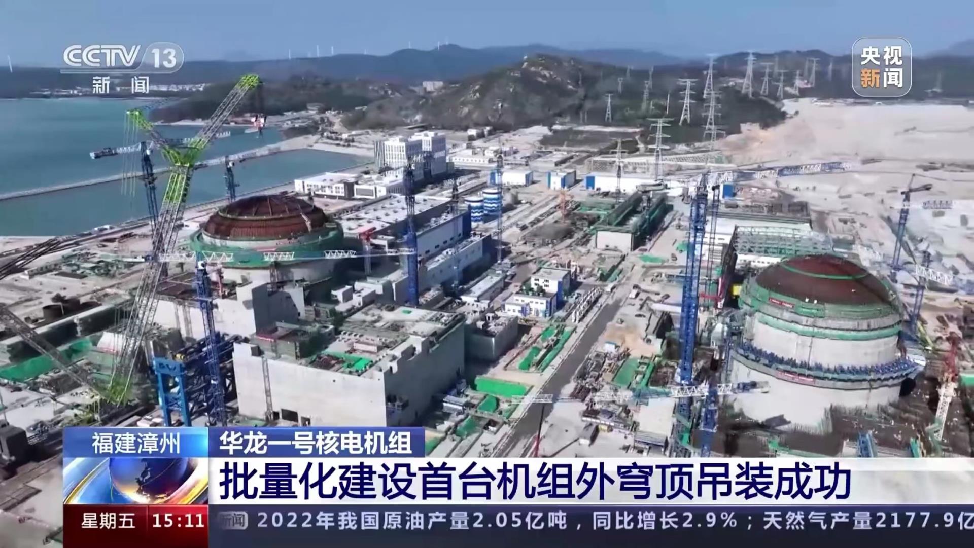 2月17日上午,在福建漳州核電站,中聯(lián)重科3200噸起重機成功吊裝了“華龍一號”批量化建設(shè)階段的首臺機組外穹頂,這標(biāo)志著該機組主體結(jié)構(gòu)工程施工完成,為后續(xù)并網(wǎng)發(fā)電奠定堅實基礎(chǔ)。央視新聞直播關(guān)注,央視新聞頻道《新聞直播間》欄目重點報道。
