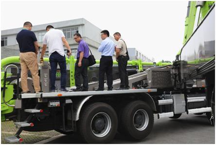 ▲客戶(hù)親自登上中聯(lián)重科4.0設(shè)備觀摩體驗(yàn)。