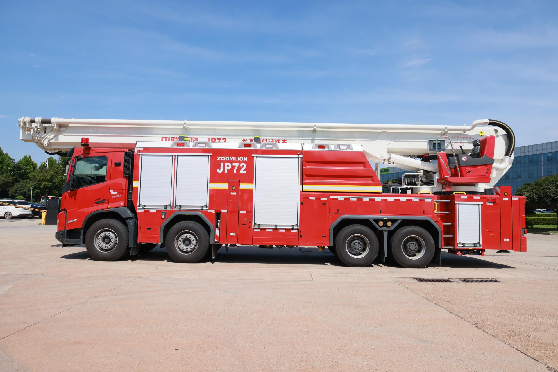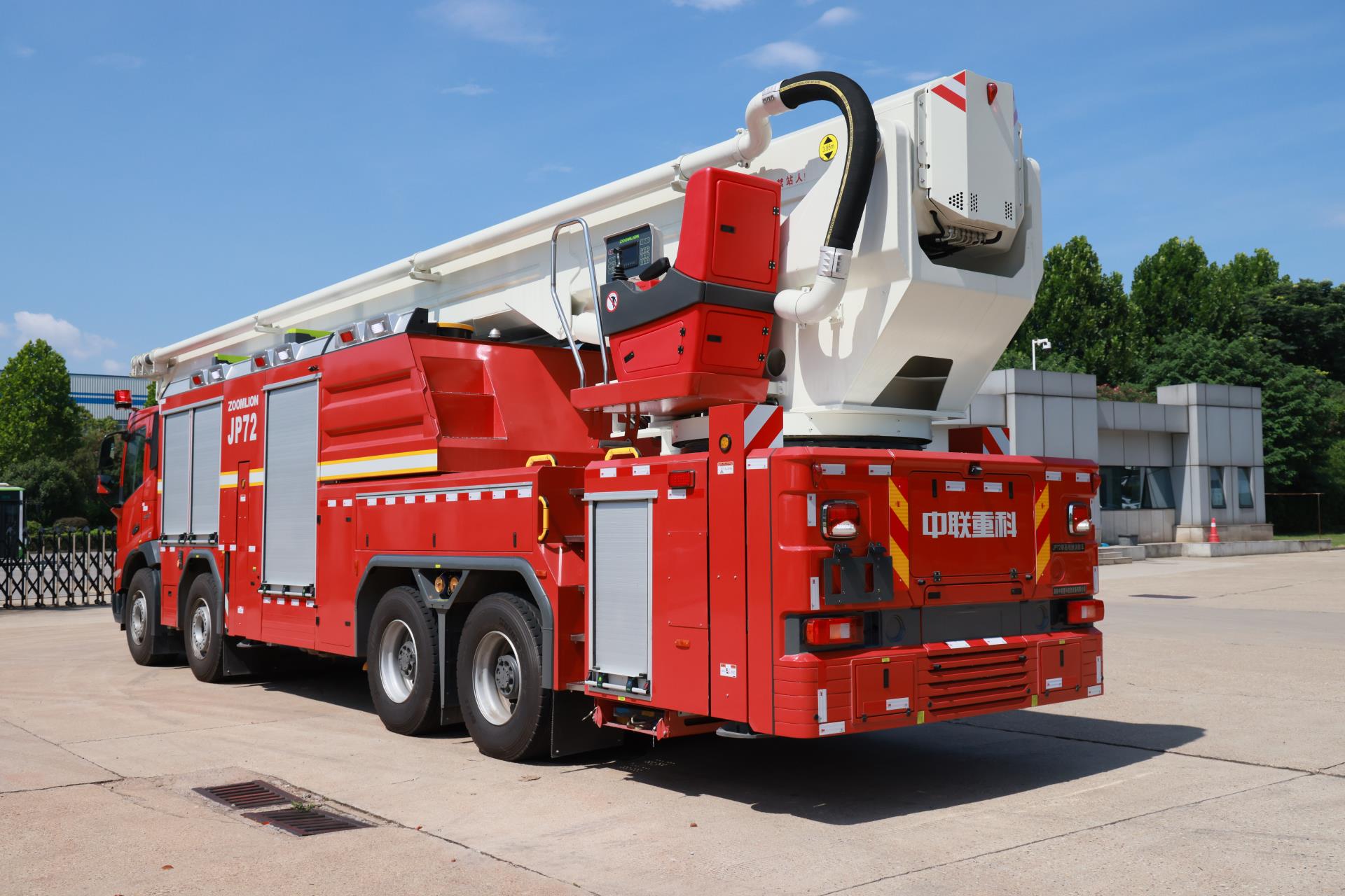 中聯(lián)牌JP72型舉高噴射消防車,具備強大的滅火功能,整車性能優(yōu)越,快速高效,操作性、安全性及智能化控制水平處于國內(nèi)先進水平。車輛采用輕量化四節(jié)伸縮主臂+三節(jié)側(cè)置伸縮曲臂結(jié)構,兼顧大高度、大幅度、大流量高空滅火作業(yè),可應對各類復雜環(huán)境滅火救援,適用于城鎮(zhèn)、港口、工礦企業(yè)高層建筑以及石油、化工、油罐、倉庫等大型建筑火災撲救。