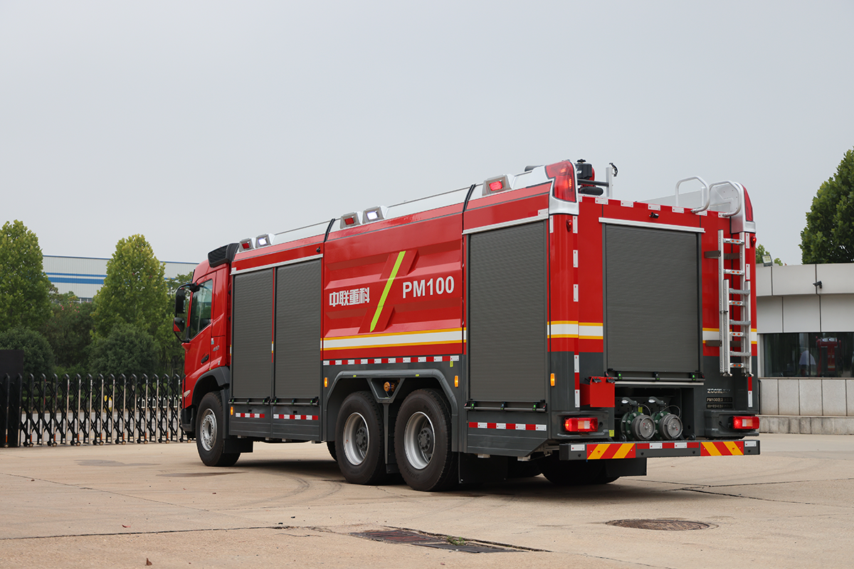 中聯(lián)牌PM100型泡沫消防車,整車機(jī)動(dòng)靈活,裝備常規(guī)型B類泡沫系統(tǒng),適合撲救工業(yè)與民用建筑A類火災(zāi),亦可撲救石化,煤化,油庫(kù)等B類火災(zāi);全鋁合金車身,自重輕,強(qiáng)度高,防腐蝕性能好,可隨車攜帶多種搶險(xiǎn)救援器材,是城市應(yīng)急救援消防隊(duì)與企業(yè)專職消防單位滅火救援的重要裝備。