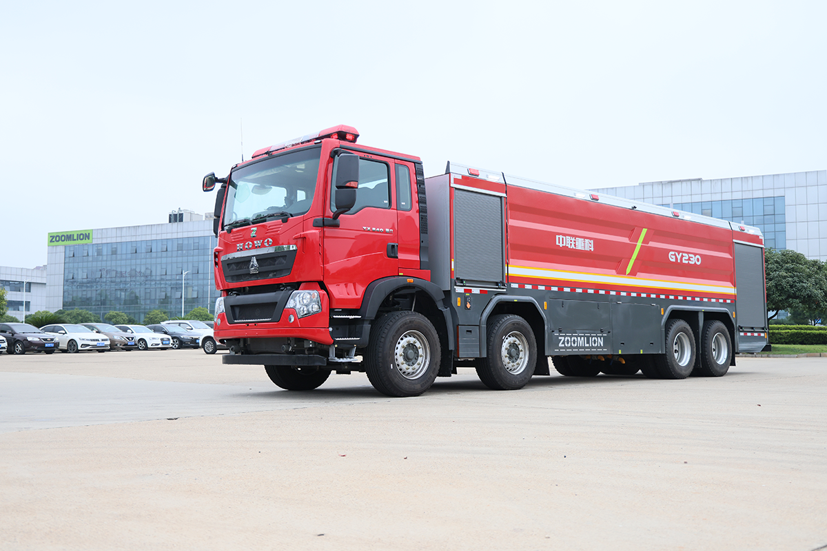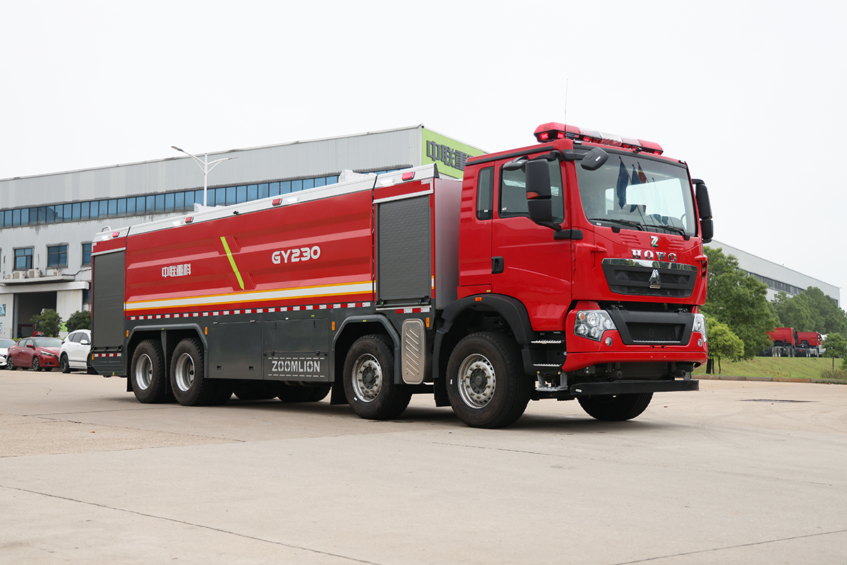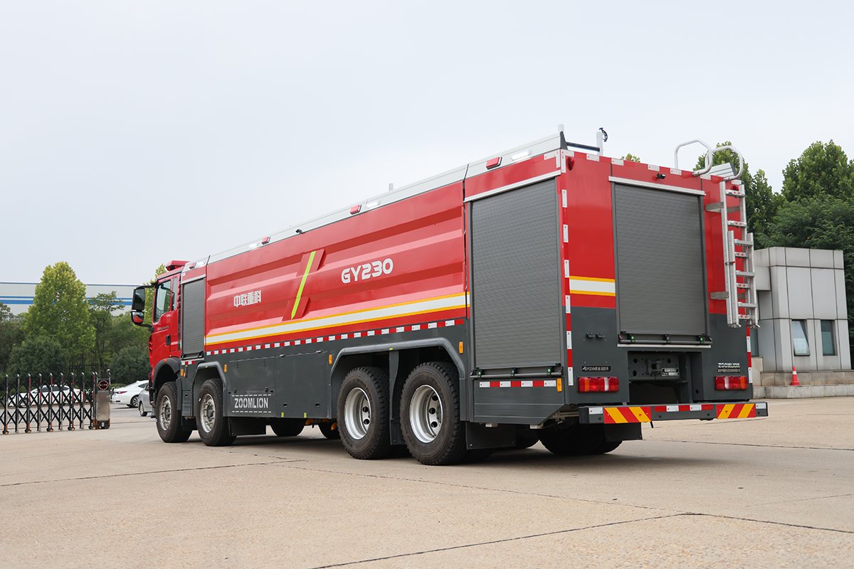 中聯(lián)牌GY230-6型供液消防車,整車機(jī)動靈活,整車載液量大,裝備供液(向其他滅火裝備輸送泡沫液)與吸液(迅速補給自帶供液罐)兩套獨立的螺旋轉(zhuǎn)子泵供吸系統(tǒng),可向滅火裝配遠(yuǎn)距離不間斷輸送泡沫原液,是城市應(yīng)急救援消防隊與企業(yè)專職消防單位必備首選滅火后勤保障利器。