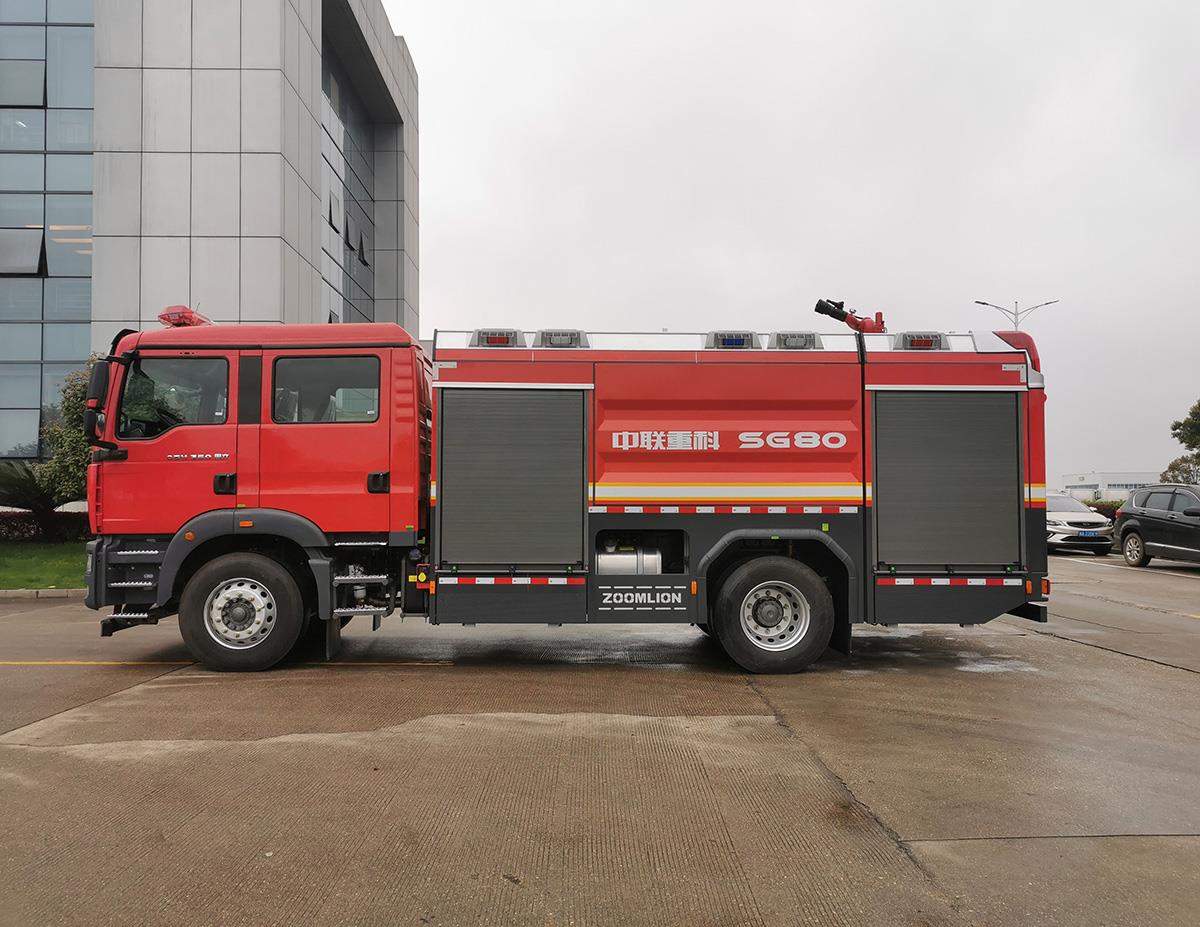 中聯(lián)牌PM80泡沫/水罐消防車動力強勁,結(jié)構(gòu)緊湊,機動性好。滅火劑容量大,泵、炮流量大,系統(tǒng)自動化程度高。管路布置合理,進、出水口位置和消防器材的擺放符合實戰(zhàn)要求,滅火效率高,適于撲救工業(yè)與民用建筑A類火災(zāi),也可撲救石化、煤化、油庫等B類火災(zāi),還可進行遠(yuǎn)距離、高層滅火或接力供水等。