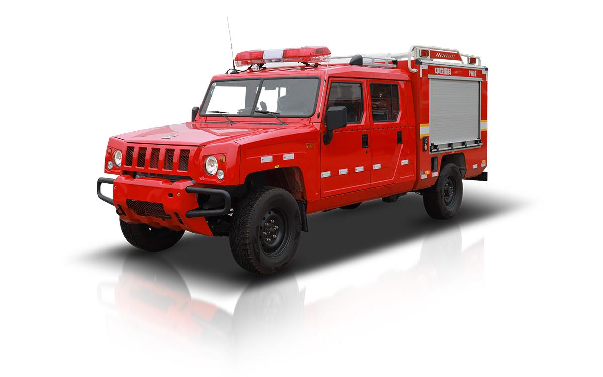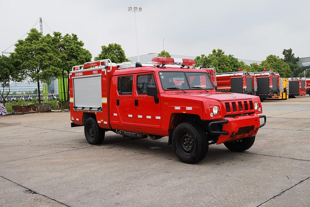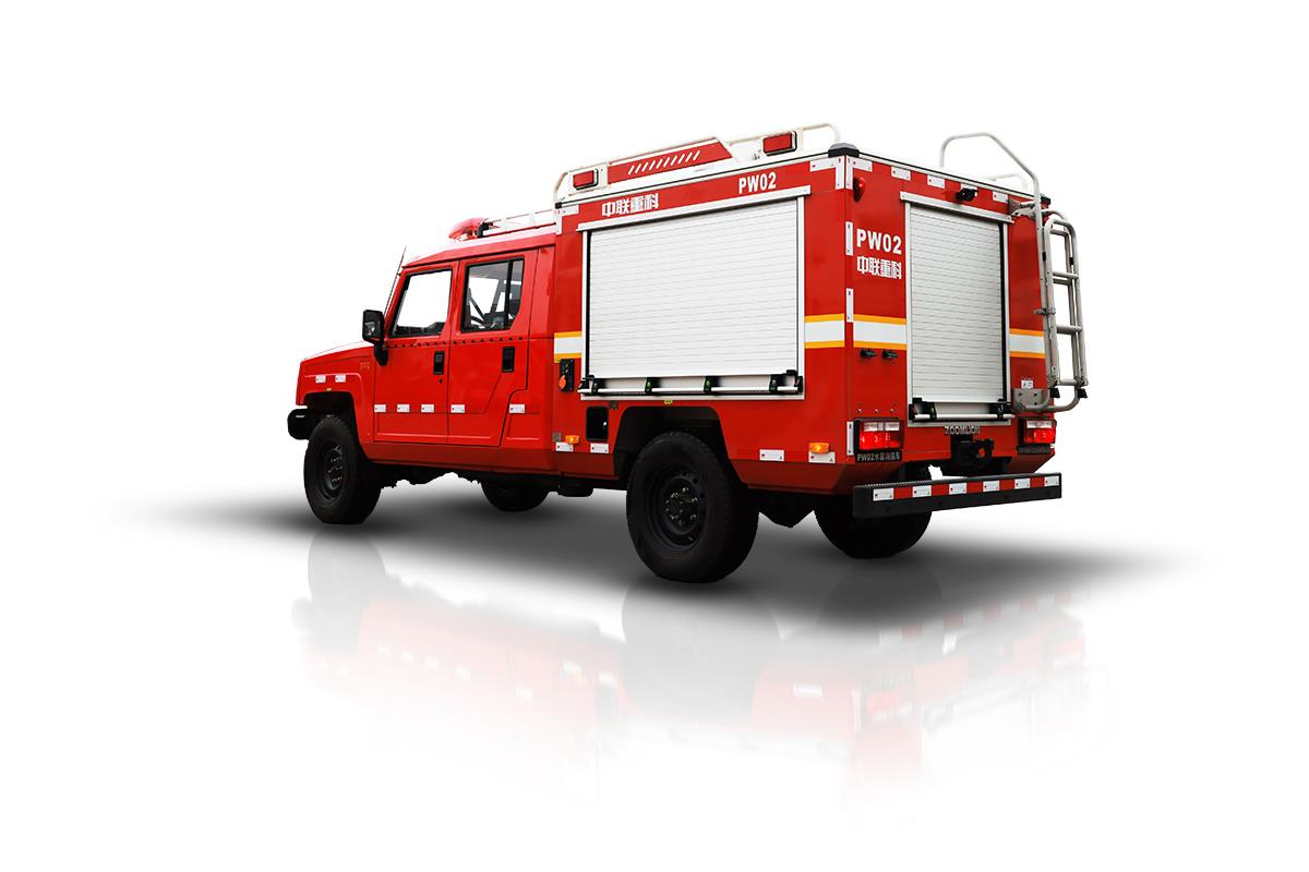 中聯(lián)重科PW02A6“平戰(zhàn)接合型”水霧消防車,在救援隊(duì)伍行進(jìn)時(shí),起突前救援及通信作用。搭載高性能細(xì)水霧模塊,實(shí)現(xiàn)前期火災(zāi)的撲救,實(shí)現(xiàn)打早打小;搭載車載電臺(tái)與后方無(wú)線語(yǔ)音通信,對(duì)救援車隊(duì)起到引導(dǎo)作用。還可搭載危險(xiǎn)氣體偵測(cè)設(shè)備、車載絞盤、倒伏式照明燈等器材設(shè)備。該消防車由北汽勇士(四驅(qū))改制而成,動(dòng)力強(qiáng)勁,能適應(yīng)泥濘、破損等復(fù)雜路況,適用于消防、公安、地震等應(yīng)急救援場(chǎng)景。