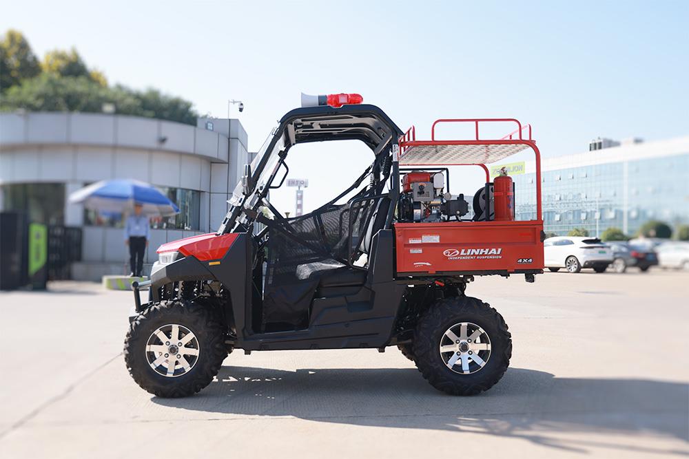 中聯(lián)重科XMC4JB/4.7-LH400U型四輪消防摩托車結合國內(nèi)外的先進設計理念和消防實戰(zhàn)需要創(chuàng)新設計而成,具有多功能、高機動等特點,配備森林消防泵和細水霧滅火系統(tǒng),主要用于狹小空間或復雜地形的火災救援,其主要功能包括快速巡邏、滅火救援以及山地搜救等。