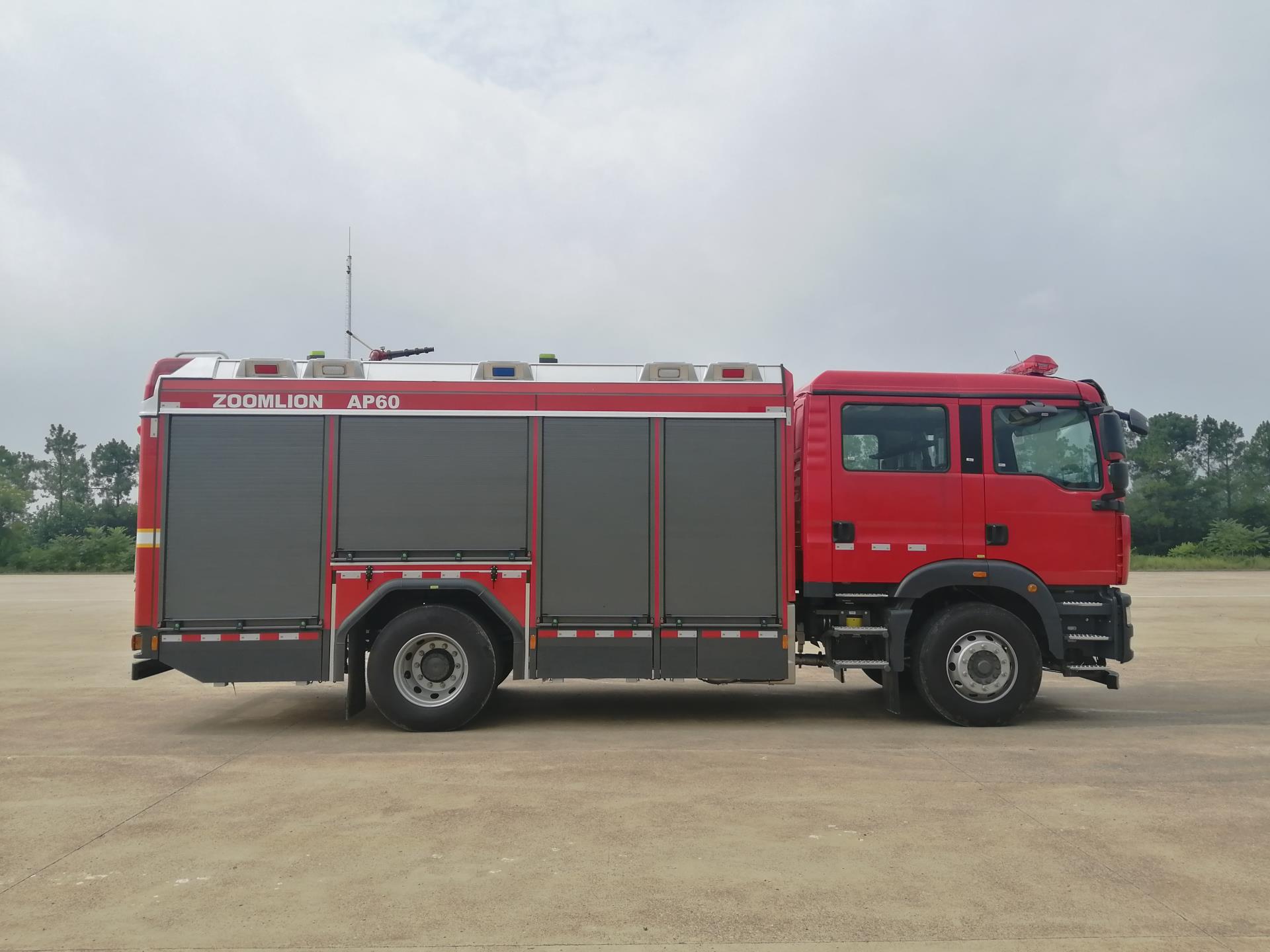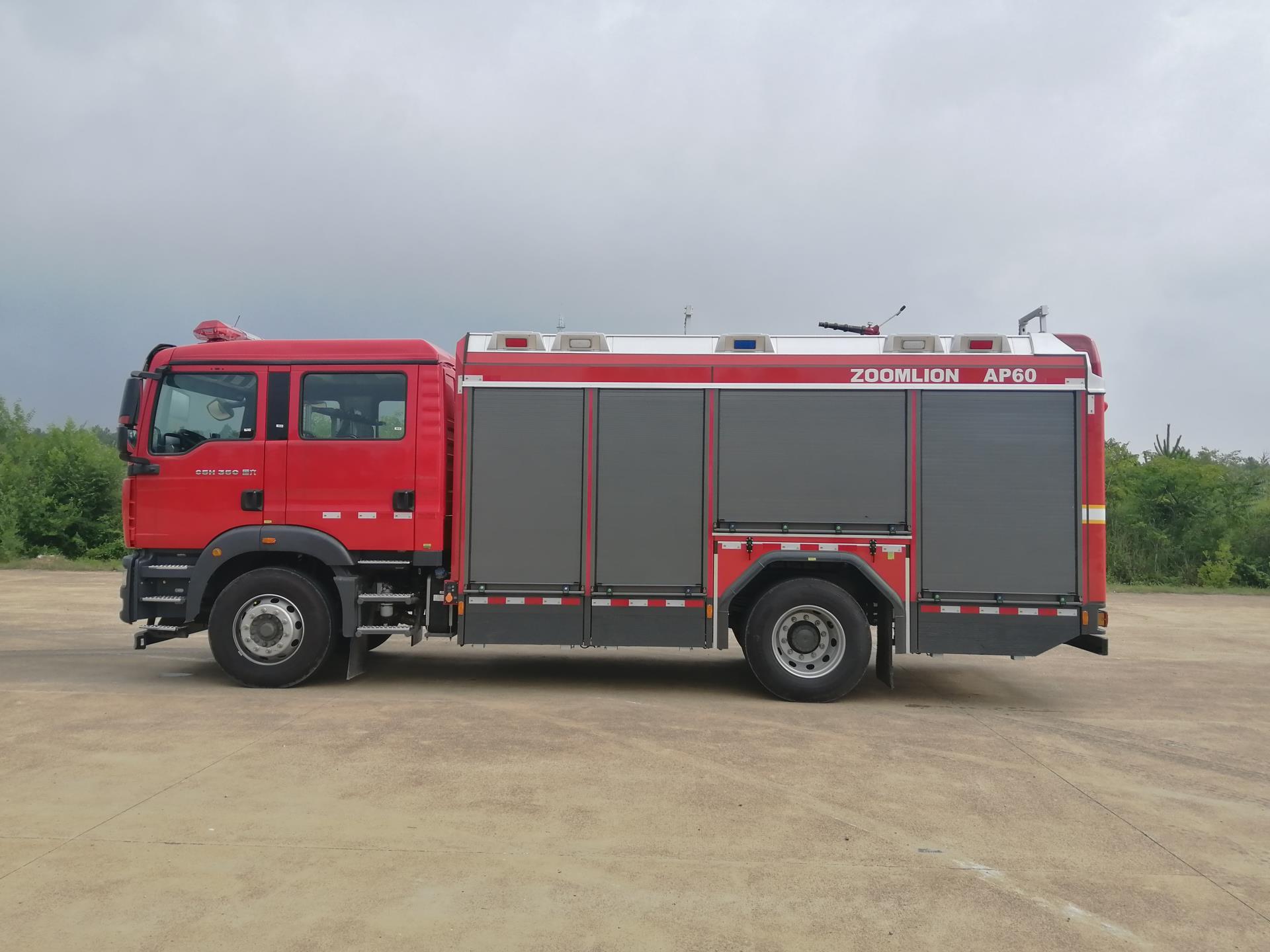 中聯(lián)牌AP60城市主戰(zhàn)消防車(chē)選用中國(guó)重汽汕德卡ZZ5206N471GF5型二類(lèi)底盤(pán)、裝備進(jìn)口全自動(dòng)壓縮空氣A類(lèi)泡沫系統(tǒng)改裝而成。整車(chē)外形美觀、設(shè)計(jì)科學(xué)、匹配合理。