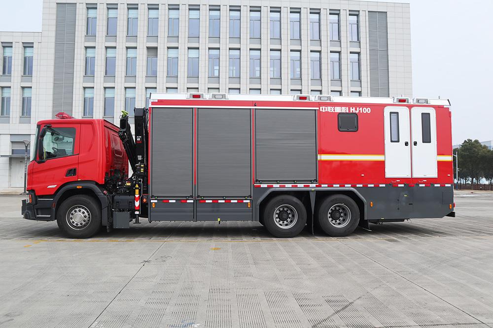? ? ? 中聯(lián)重科HJ100化學(xué)救援消防車(chē)是公司基于斯堪尼亞P500 6×4高性能底盤(pán)打造,集化學(xué)洗消、搶險(xiǎn)救援、照明、重型起吊等多功能于一體的多功能救援平臺(tái)。該車(chē)采用輕量化鋁合金車(chē)身結(jié)構(gòu),配備國(guó)際頂級(jí)子系統(tǒng)(包括比利時(shí)TEKLITE照明系統(tǒng)、冠軍7.5噸級(jí)電動(dòng)絞盤(pán)、希爾博起吊機(jī)等),可搭載100余件專(zhuān)業(yè)救援器材,集化學(xué)洗消、照明、供電、牽引、起吊、破拆、偵查、救援等功能于一體的多功能消防車(chē);具備強(qiáng)大的搶險(xiǎn)和化學(xué)救援能力,可滿(mǎn)足化學(xué)泄漏、地震災(zāi)害、洪澇事故、車(chē)禍等復(fù)雜場(chǎng)景下的綜合救援需求,是國(guó)內(nèi)領(lǐng)先的模塊化多功能救援平臺(tái)。