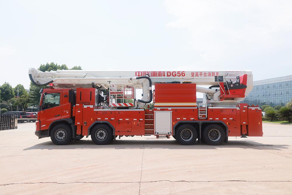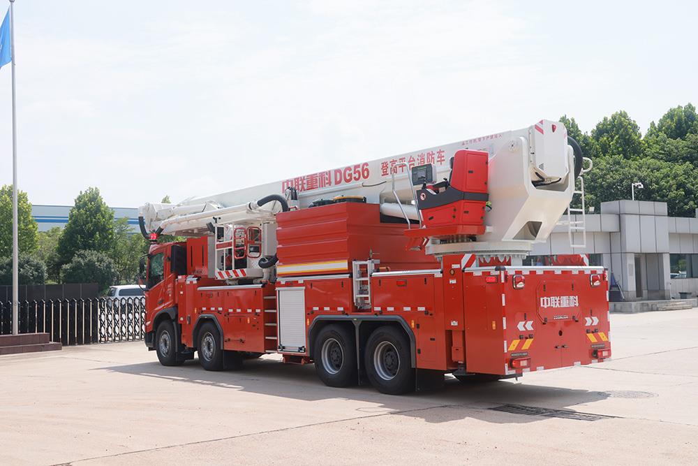 中聯(lián)牌DG56C6型登高平臺消防車,采用5+2雙伸縮臂結(jié)構(gòu),配置大流量水力系統(tǒng)、智能控制系統(tǒng)及大功率底盤系統(tǒng),整車滅火能力及高空救援能力強悍,動作平穩(wěn)快捷,操作簡便。適用于城鎮(zhèn)、港口、工礦企業(yè)高層建筑以及石油、化工、油罐、倉庫等大型建筑滅火及救援。