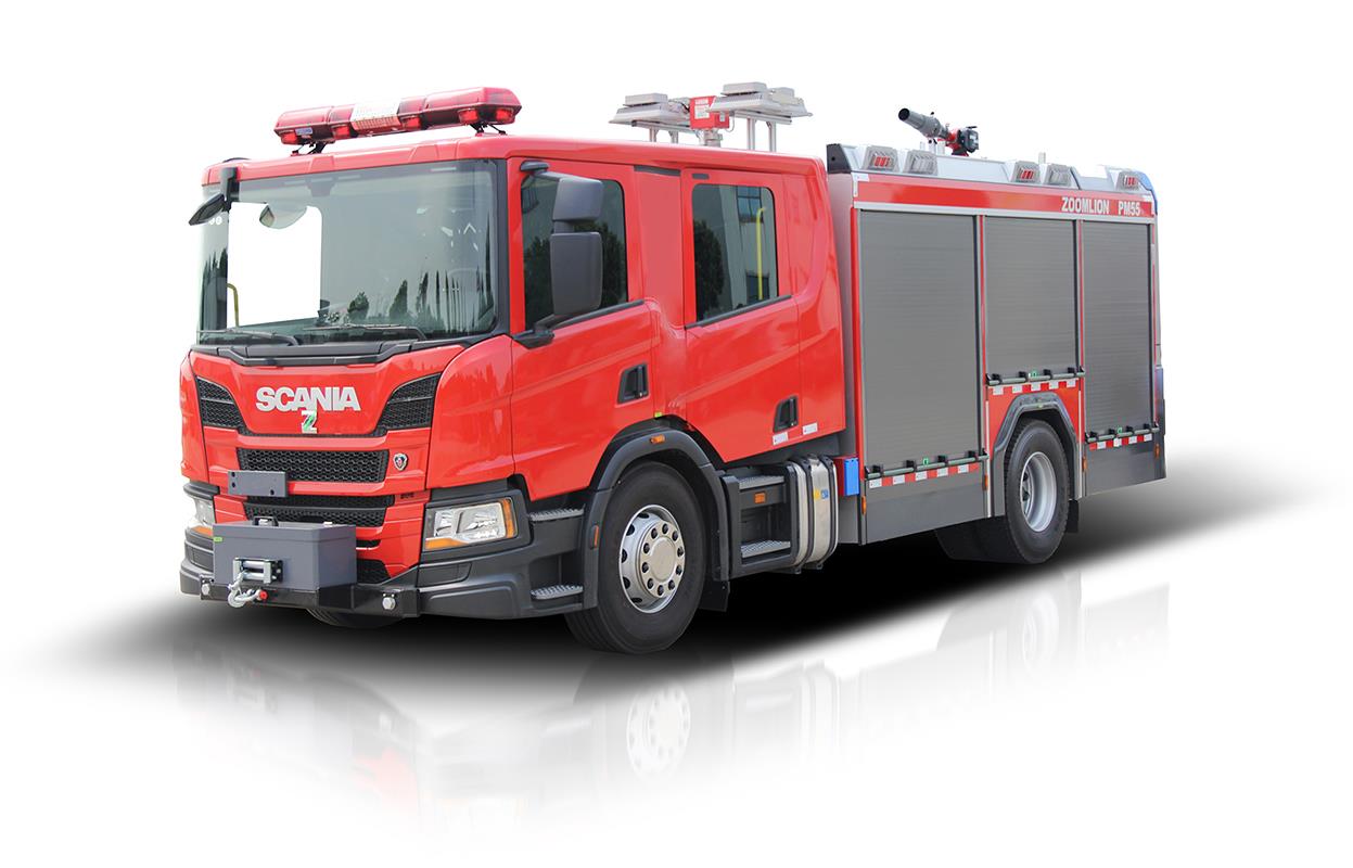 ? ? ? ?PM55城市主戰(zhàn)消防車采用原裝進(jìn)口斯堪尼亞P410改裝, 底盤作為車輛主要組成部分,除了行駛時承載以外,還是上裝部分的載體,同時為滅火系統(tǒng)正常工作,可靠、平穩(wěn)地傳遞動力。容罐作為車輛的基礎(chǔ)件,用于裝載水及泡沫滅火劑。滅火系統(tǒng)由消防泵、泡沫混合系統(tǒng)、消防炮及管路、閥門等組成。為適應(yīng)消防滅火實(shí)戰(zhàn)需要,該車既可以使用車頂消防炮滅火,也可以使用水帶連接直流、開花水槍或泡沫槍進(jìn)行滅火;同時可以利用車上攜帶發(fā)電照明系統(tǒng)對救援現(xiàn)場提供電力保障和照明;車輛還隨車攜帶了大量搶險救援器材用于搶險救援工作。