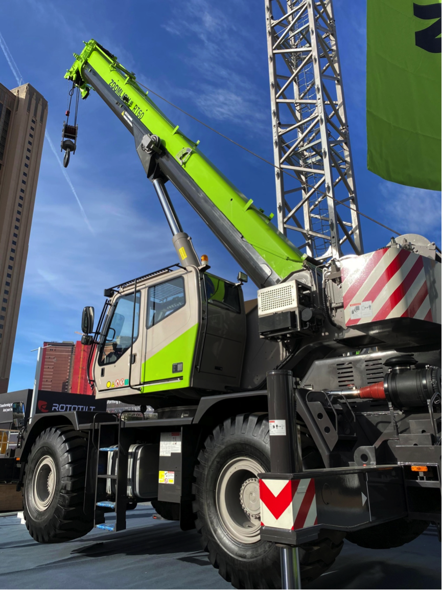 中聯(lián)重科亮相本次美國展的兩款工程起重機(jī)械分別為ZCC2600履帶式起重機(jī)和RT60越野輪胎起重機(jī)。