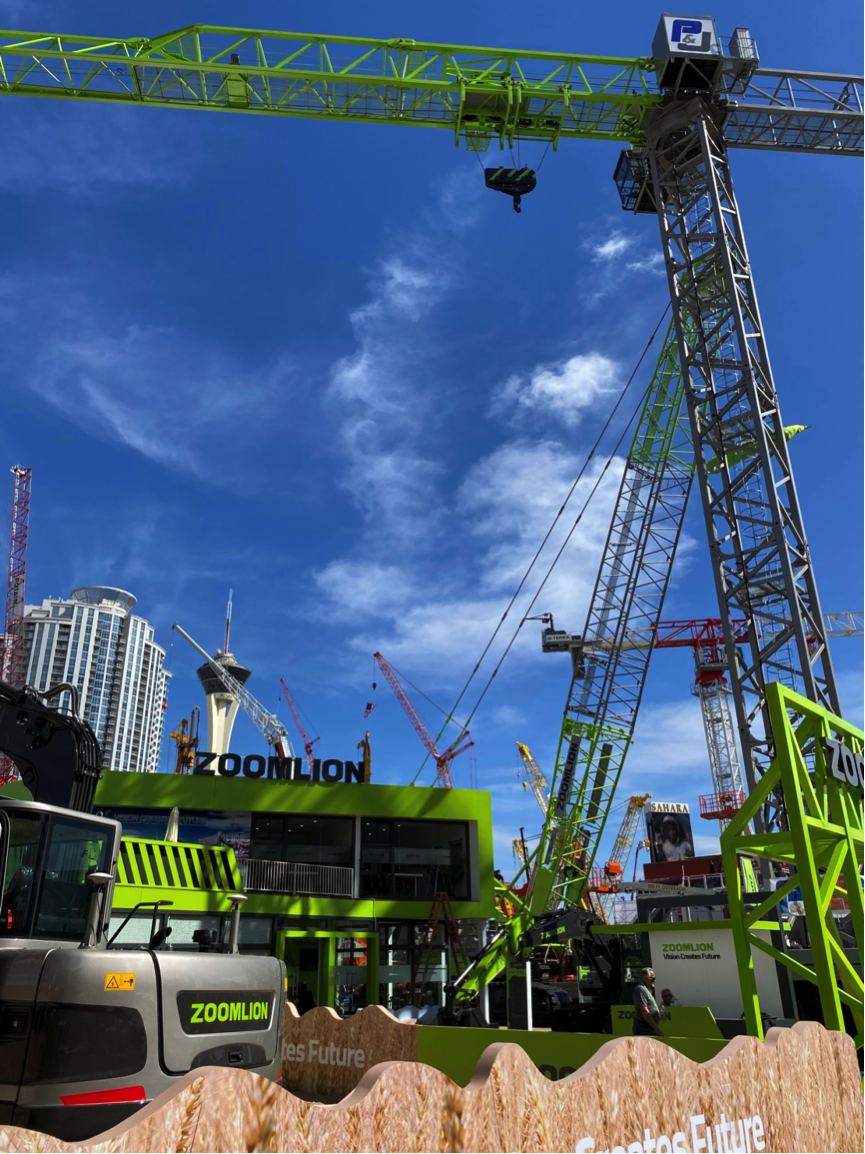 聳立在拉斯維加斯展場的極光綠塔機(jī)是中聯(lián)重科熱銷的新款T8030-25塔機(jī)?;诘聡?/span>JOST技術(shù)、結(jié)合美國標(biāo)準(zhǔn),中聯(lián)重科研發(fā)了T8030-25塔機(jī)。經(jīng)過四年的市場驗(yàn)證和改進(jìn),中聯(lián)重科和代理商P&J Arcomet公司共同為北美市場設(shè)計(jì)了性能更強(qiáng)大、品質(zhì)更可靠的新款T8030-25塔機(jī)。