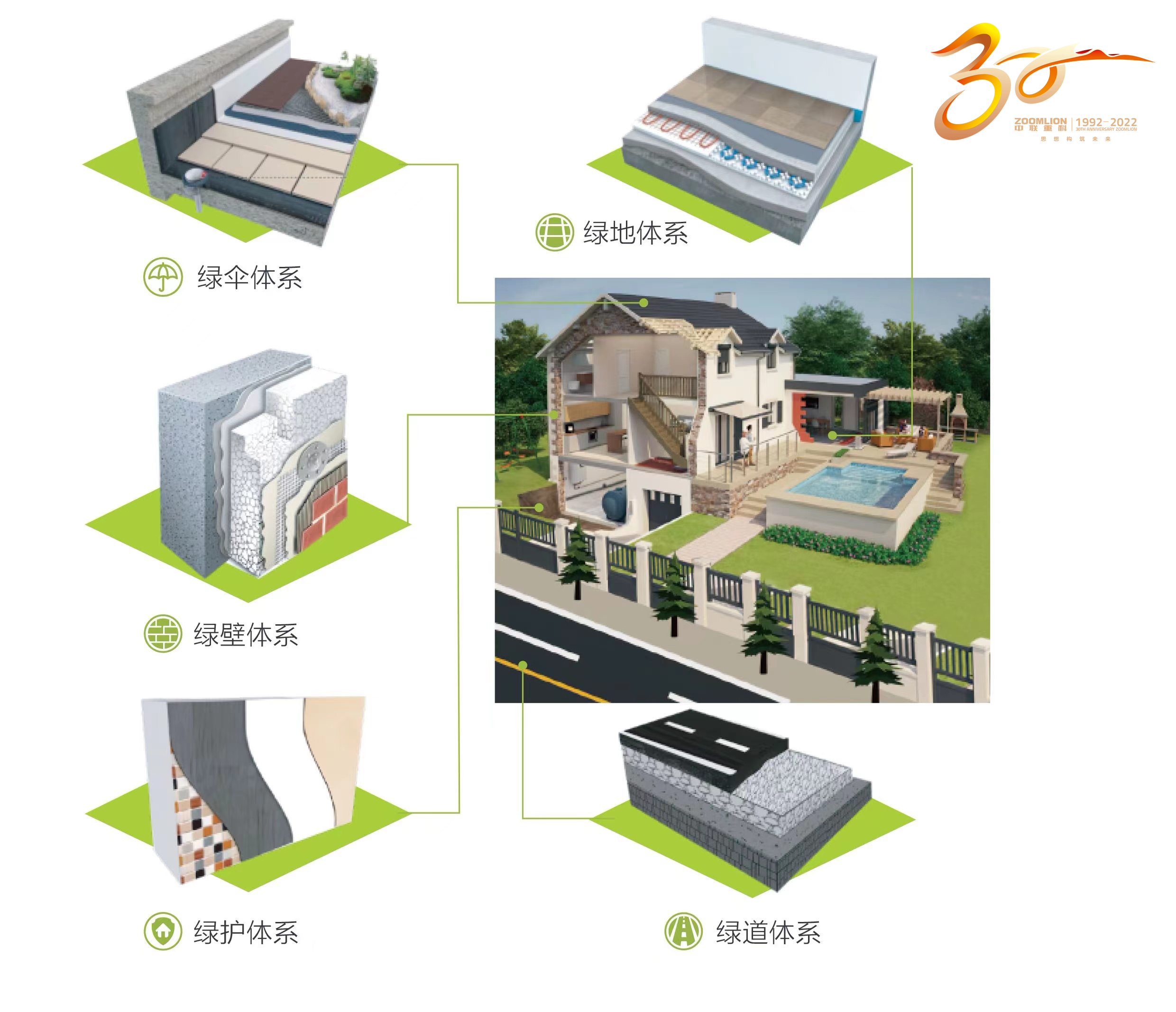 以這些精準(zhǔn)計(jì)量系統(tǒng)為基礎(chǔ),中聯(lián)重科打造了先進(jìn)的建筑新材料智能產(chǎn)線,并組建了龐大的碩博技術(shù)團(tuán)隊(duì),成立了專門從事建筑材料研發(fā)的材料研究院,建筑新材配方和工藝的創(chuàng)新研發(fā)不斷加快腳步。目前,中聯(lián)重科新材料已開發(fā)出3000多種建筑材料基礎(chǔ)配方和工藝,轉(zhuǎn)化出90多類功能性建筑材料產(chǎn)品,形成了“綠傘、綠壁、綠地、綠護(hù)、綠道”五大綠色節(jié)能建筑材料產(chǎn)品體系。